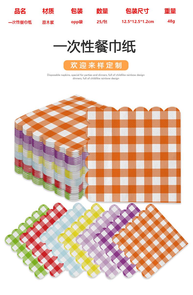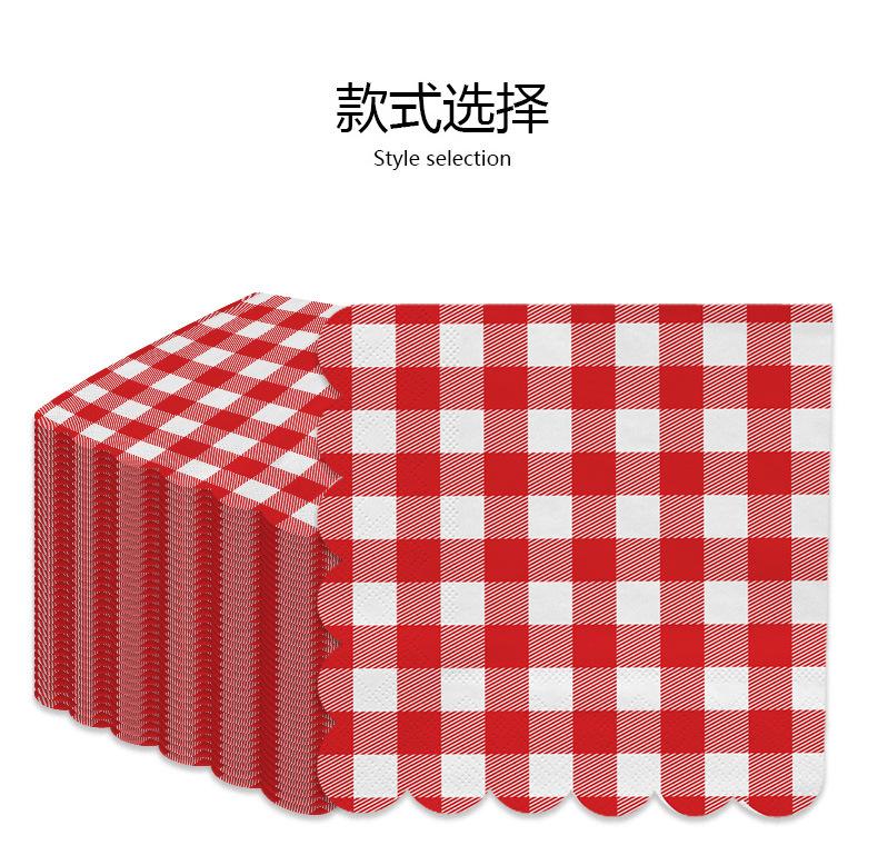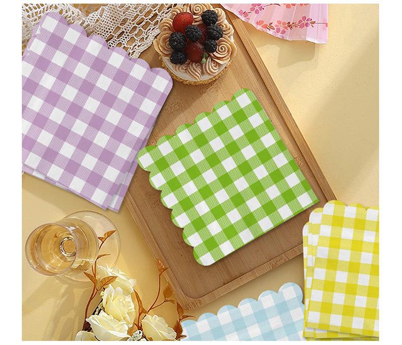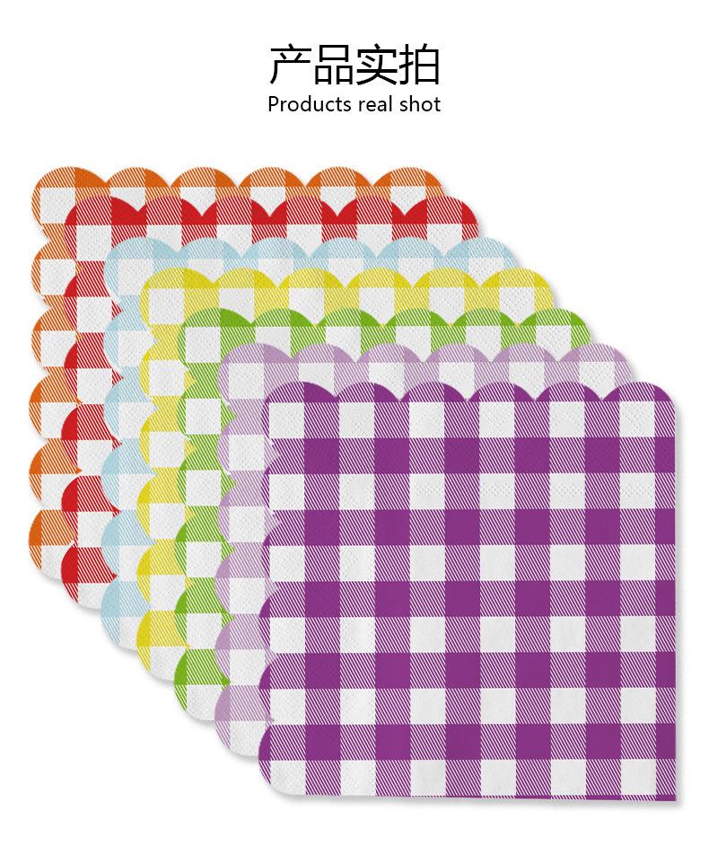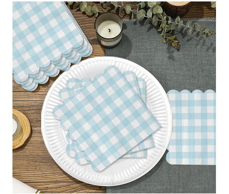 Venta al por mayor transfronteriza fiesta de cumpleaños desechable 25*25 encaje a cuadros servilleta de papel tisú suministros de decoración