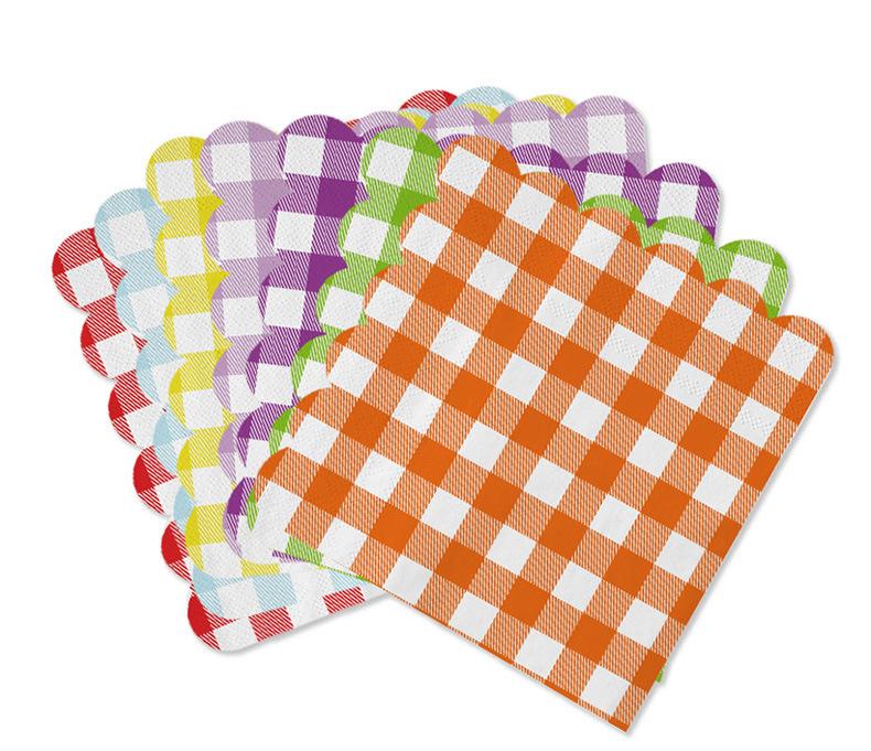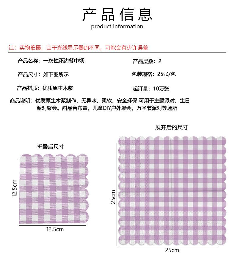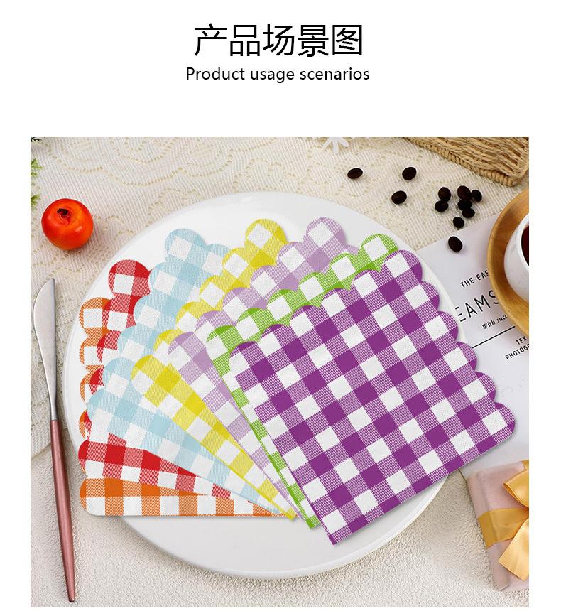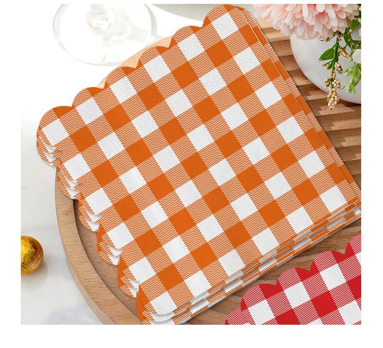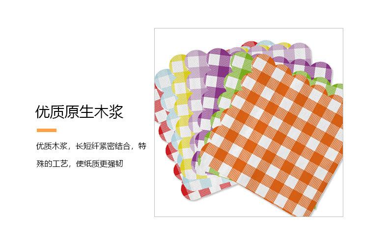 Venta al por mayor transfronteriza fiesta de cumpleaños desechable 25*25 encaje a cuadros servilleta de papel tisú suministros de decoración