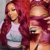 Peluca de Encaje Frontal Aliexpress Cabello Largo Rizado Borgoña Ola Grande Set de Peluca de Encaje Frontal Listo para Dropshipping