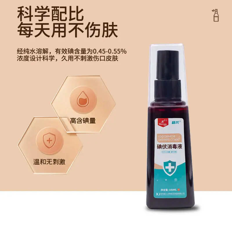 Desinfectante de Yodóforo 100ml Piel Herida Ginecológico Ombligo de Bebé Tintura de Yodo Desinfección Suave Yodóforo Botella Pequeña Spray
