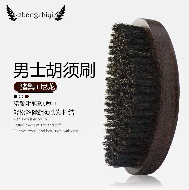 Cepillo para barba de cerdas mixtas de nailon nuevo transfronterizo, cepillo para la cabeza con aceite para barba, limpieza y cuidado para hombres, cabello liso, peluquería, cepillo para peinar la barba