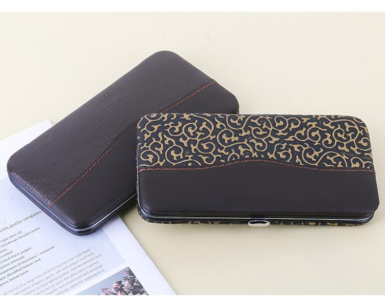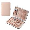 Caja de cuero, juego de 7 piezas, juego de herramientas de manicura de belleza, fabricante, regalo, impresión de logotipo, juego de cortaúñas y tijeras para uñas.