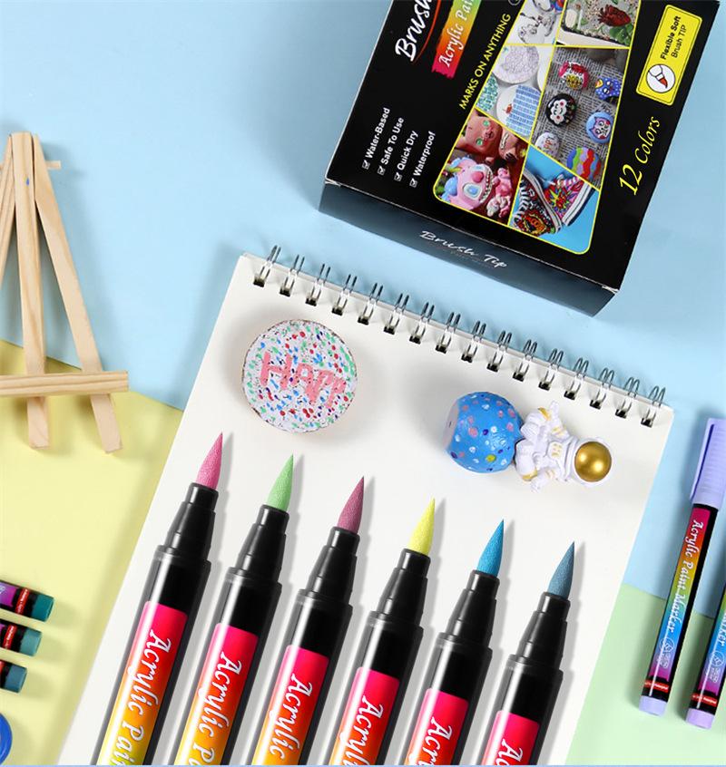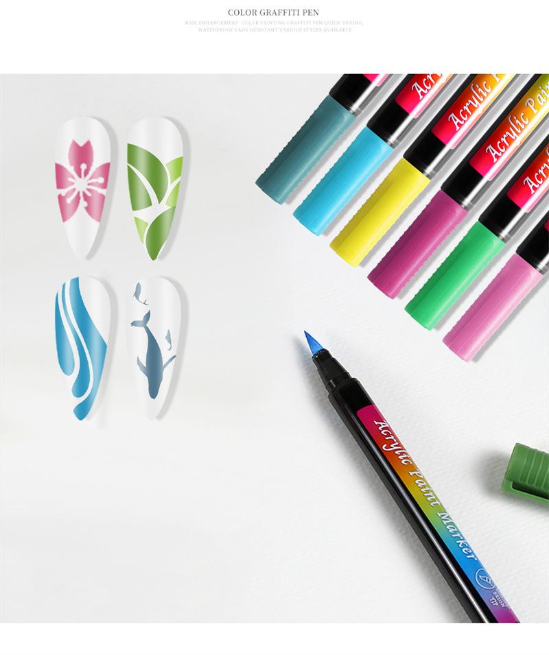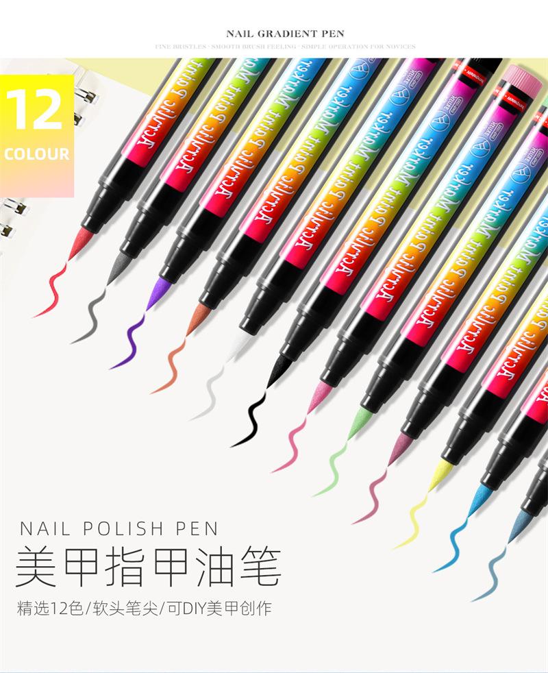 Nuevo bolígrafo transfronterizo de 12 colores para esmalte de uñas, bolígrafo de grafiti pintado a mano, rotulador de cabeza suave, juego de rotuladores