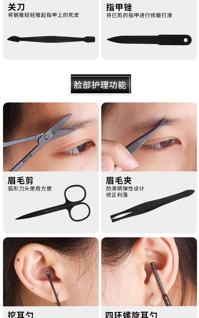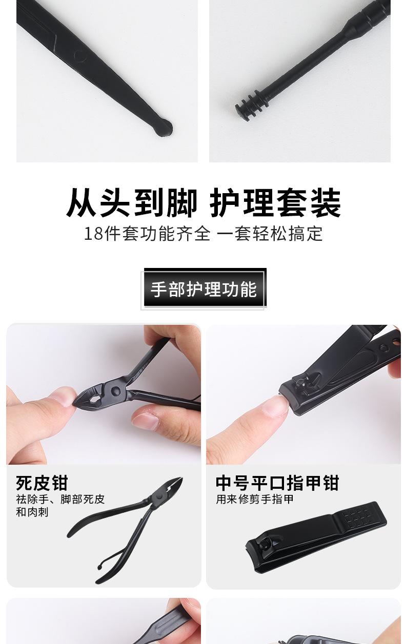 Set de Tijeras para Uñas Cortauñas de Acero Inoxidable Set de 18 Piezas Cortauñas Manicura Herramientas para Manicura Set de Belleza Negro