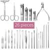 Amazon cortauñas traje de uñas traje de uñas bolsa con cremallera 26 piezas oro rosa alicates para piel muerta cuchillo para pedicura aguja para acné