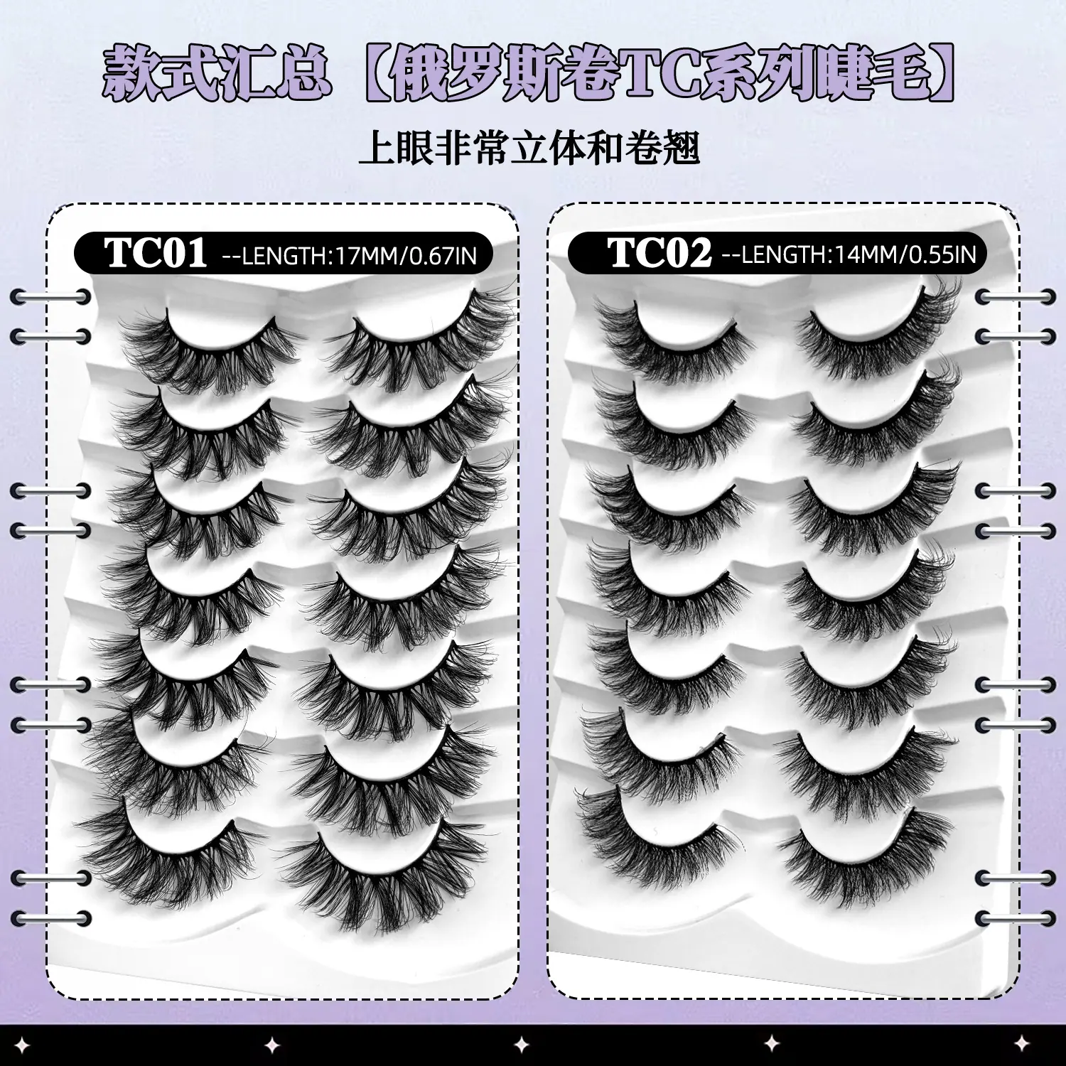 Cross style, Natural curl, Thick style, Eye tail elongated style, Messy style, Russian roll, Curly and thick style
