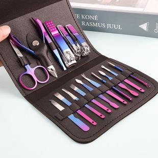 Nuevo juego de cortaúñas bicolor de 16 piezas, juego de herramientas de manicura de belleza, cortaúñas y tijeras para uñas.