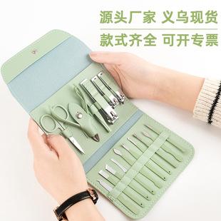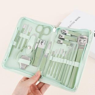 Juego completo de cortaúñas transfronterizo, color verde matcha, 22 piezas, herramientas de manicura de belleza, bolsa con cremallera, juego de cortaúñas
