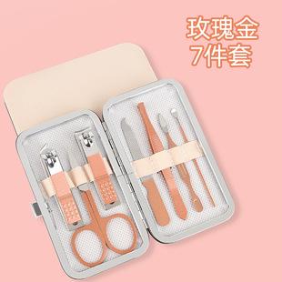 Juego de herramientas para uñas de 7 piezas en oro rosa, juego completo de cortaúñas para manicura, cortaúñas, juego de tijeras multiusos para uñas.