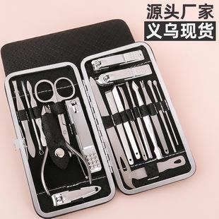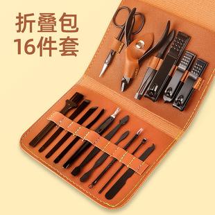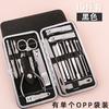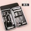 Juego de cortaúñas de fábrica, color negro, 16 piezas, cortaúñas, manicura, juego de herramientas para uñas