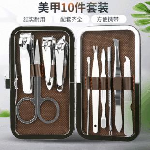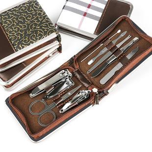 Juego de manicura, suministro directo de fábrica, caja de prepucio con cremallera, herramientas de manicura de belleza de 9 piezas, juego de cortaúñas para el hogar