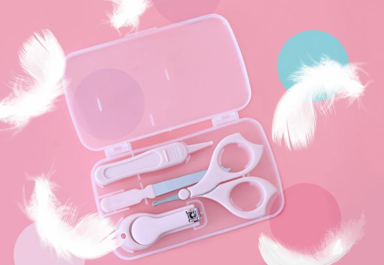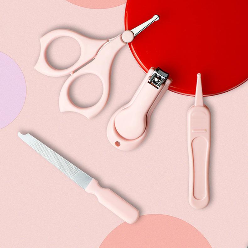 Set de cuidado de uñas en caja cuadrada, cortaúñas para bebé, juego de 4 piezas, seguridad anti-corte, tijeras de caja para niños y bebés