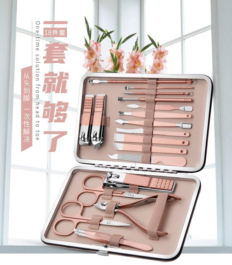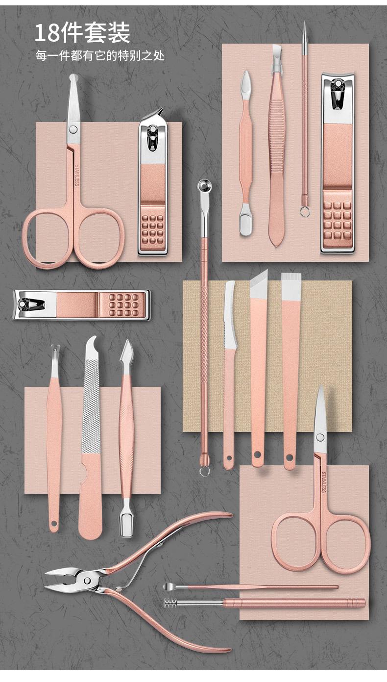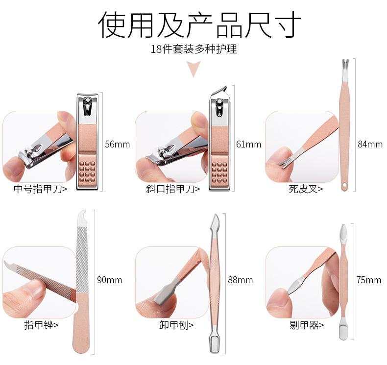 Juego de herramientas para uñas, cortaúñas de acero inoxidable, 18 piezas, cortaúñas, herramienta para el cuidado de la manicura.