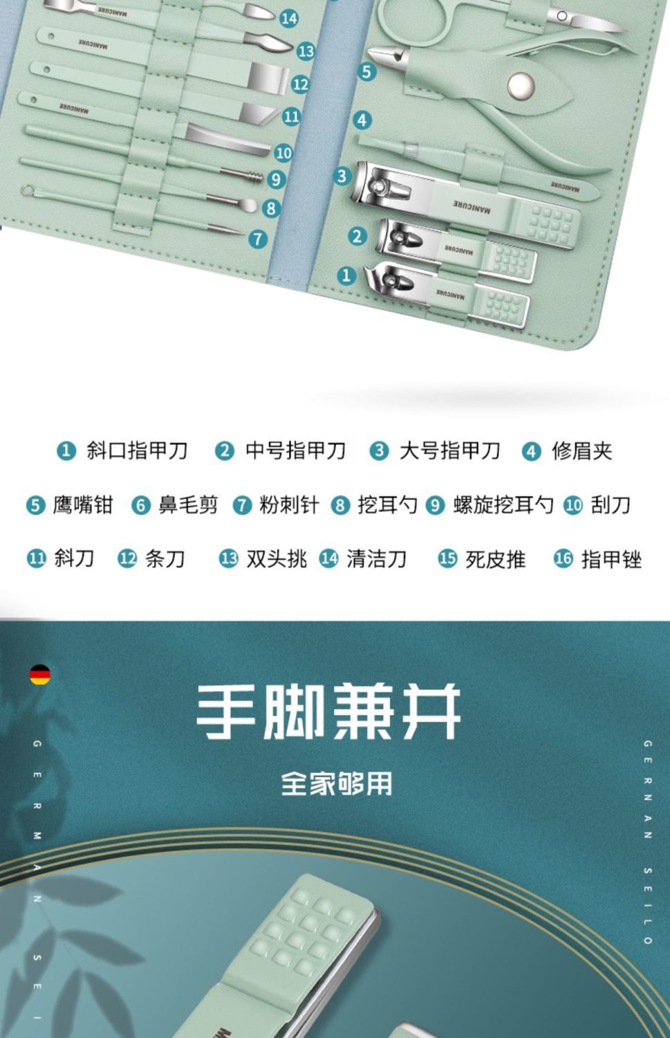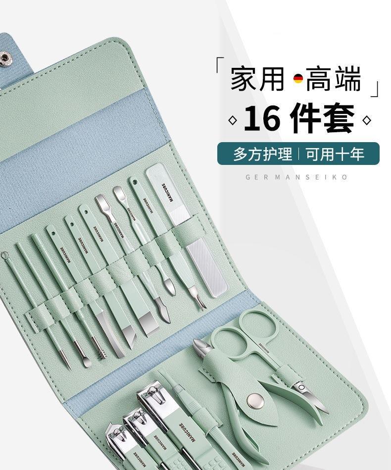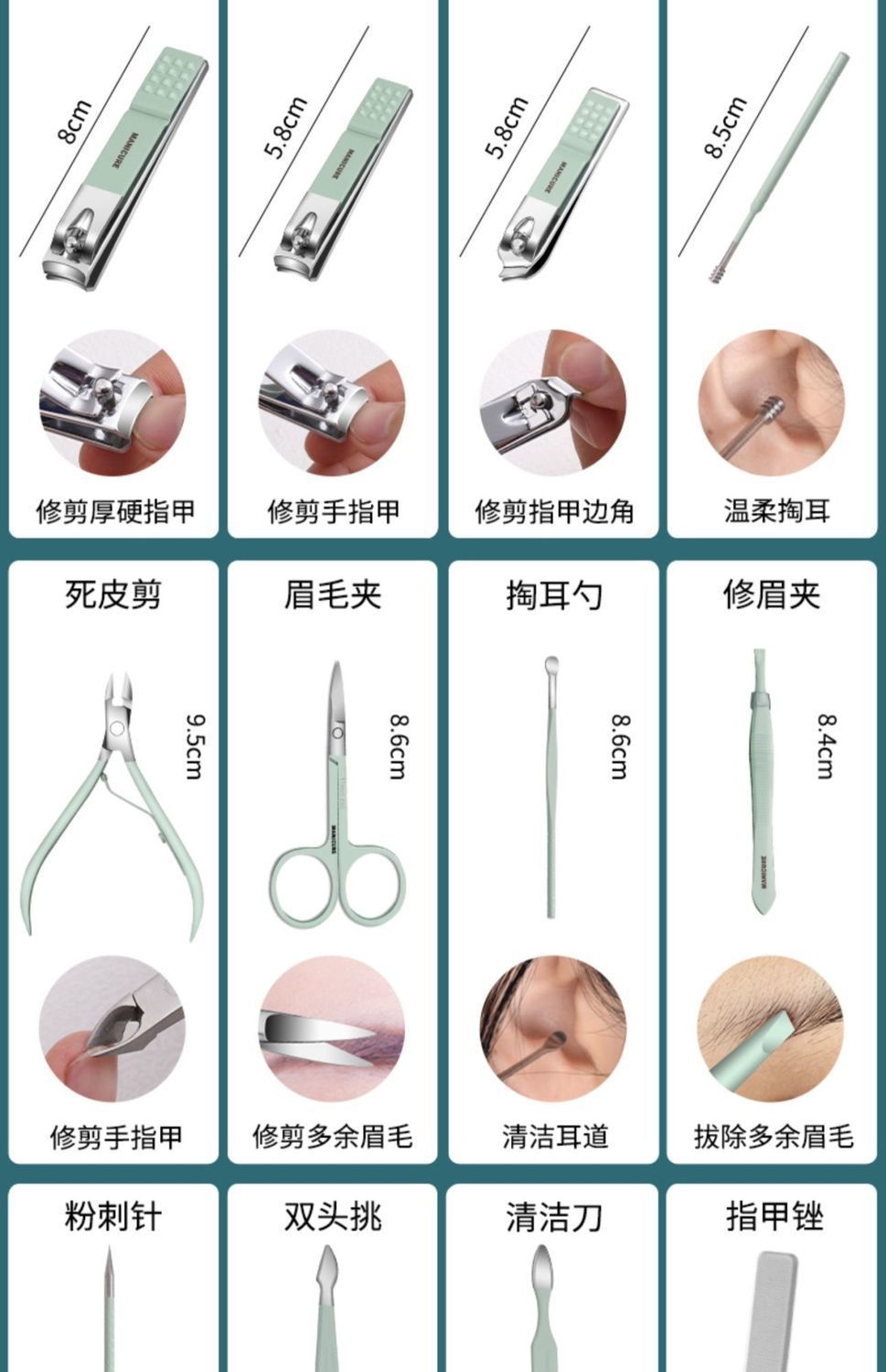 Set de Cortauñas de 16 Piezas Set de Herramientas para Manicura Verde Oscuro Cuchillo para Pedicura Tijeras para Uñas Limpiador de Oídos Cortauñas Acero Inoxidable