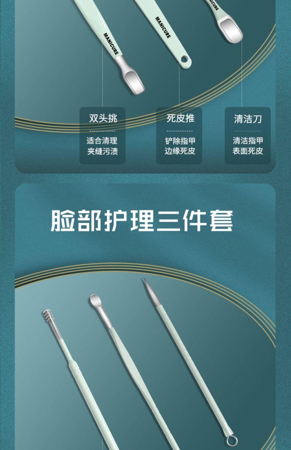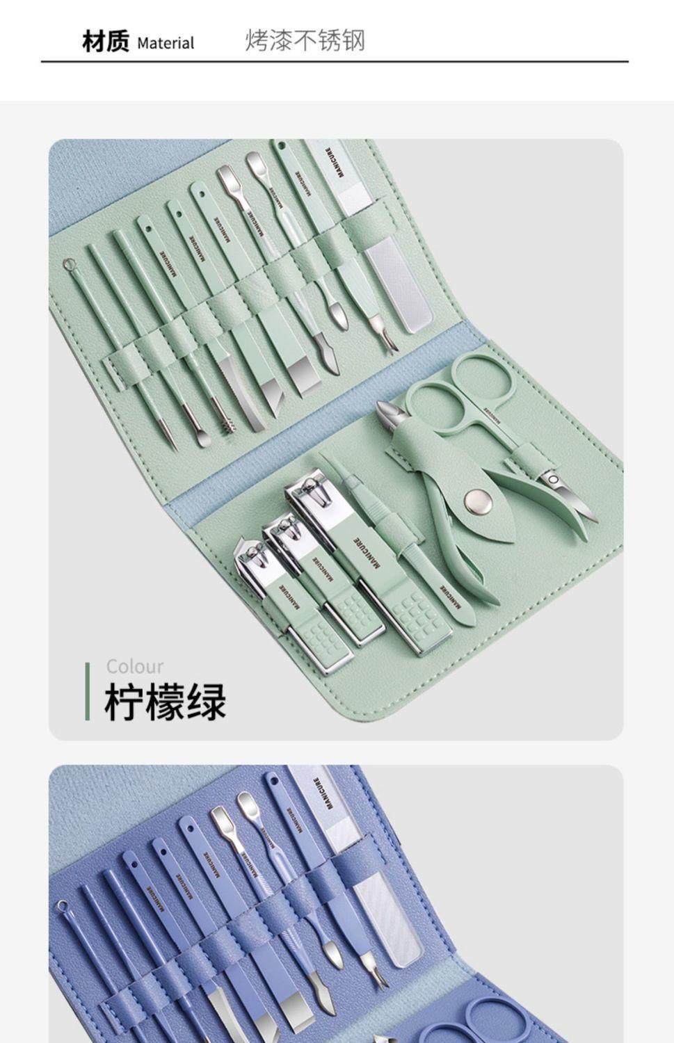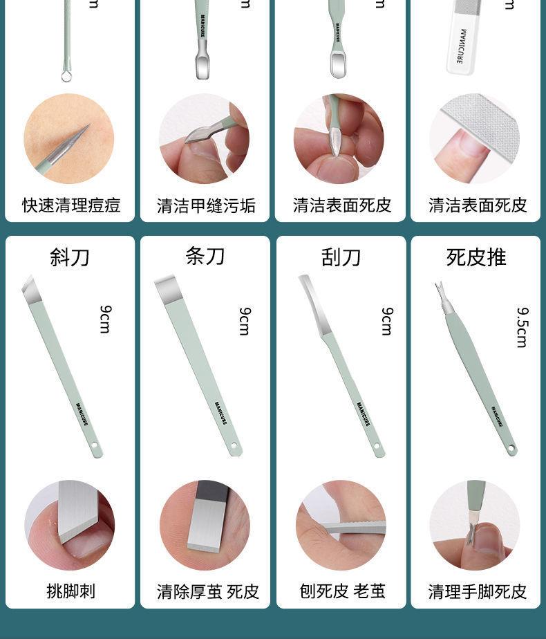 Set de Cortauñas de 16 Piezas Set de Herramientas para Manicura Verde Oscuro Cuchillo para Pedicura Tijeras para Uñas Limpiador de Oídos Cortauñas Acero Inoxidable
