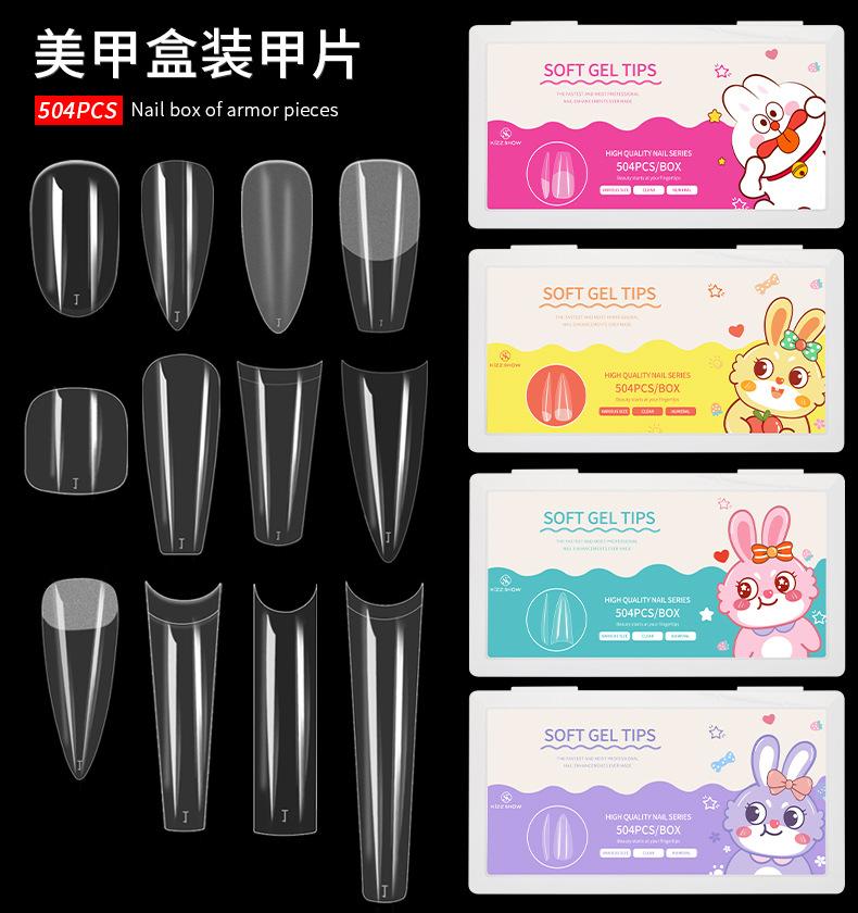 Arte de uñas ultrafino transfronterizo de 504 piezas, sin costuras, esmerilado, sin grabado, pasta completa, media pasta, armadura francesa usada a mano