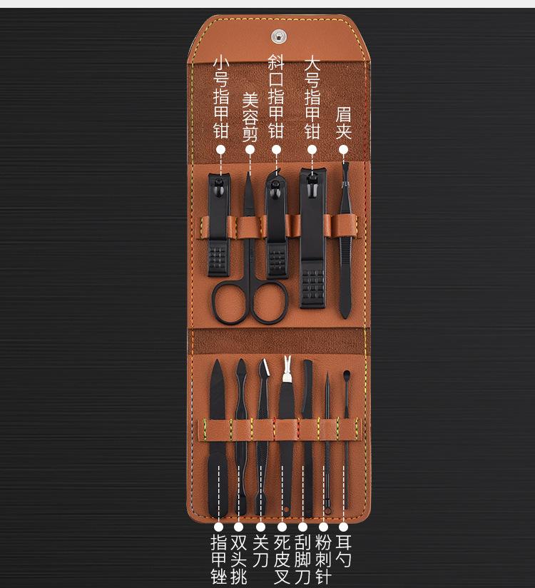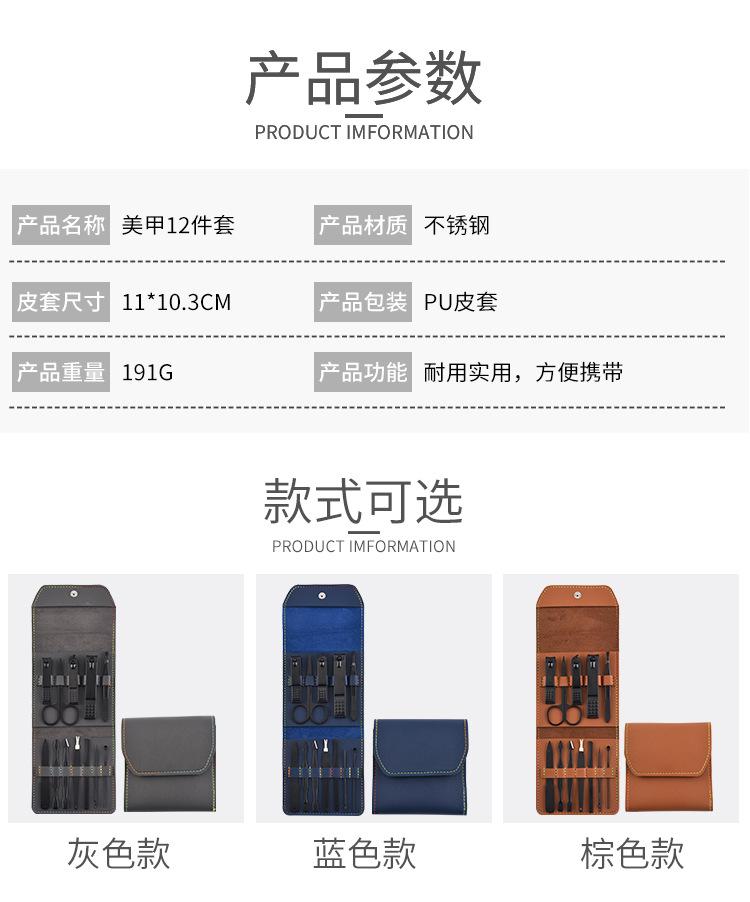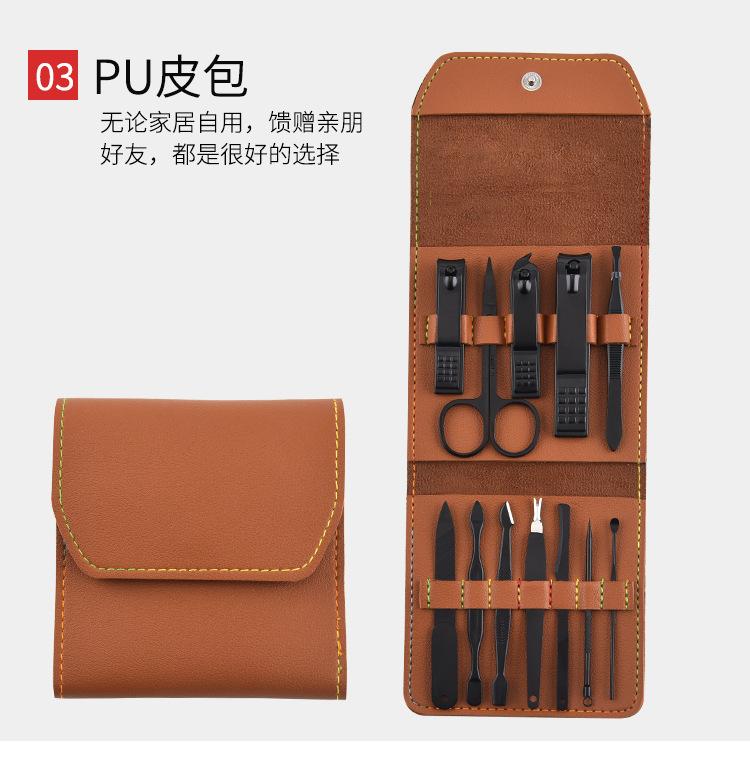 Ruth Bolsa Plegable Negro Set de Manicura de 12 Piezas Cortauñas Set de Manicura de Acero Inoxidable Logo Personalizable