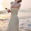 Vestido Largo Elegante de Lunares Franceses con Tirantes 2024 Nuevo Verano para Mujer Estilo Resort Costero Primer Amor Hada