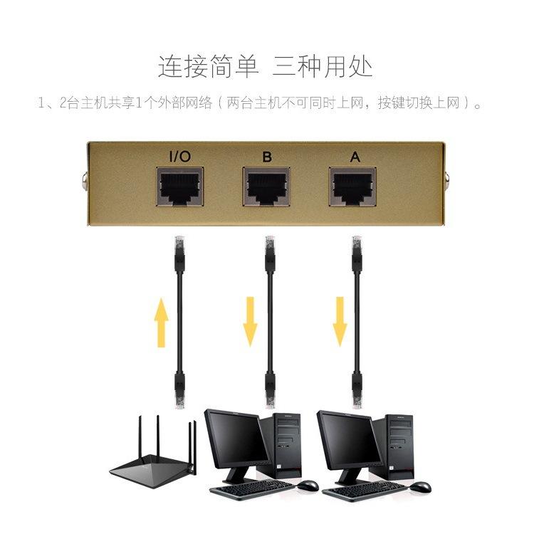 Un conmutador de red es un dispositivo de aislamiento y conmutación de red utilizado para el aislamiento físico y la conmutación entre la red interna y la red externa. Se puede colocar sobre un escritorio de oficina o un escritorio de computadora para su uso. Tiene tres interfaces de red (la interfaz de cable de red que se conecta a la tarjeta de red de la máquina local, la interfaz de cable de red que se conecta a la red externa y la interfaz de cable de red que se conecta a la red interna), y la red a utilizar se selecciona mediante un botón conmutador. Los usuarios pueden cambiar convenientemente entre las redes interna y externa, disfrutando de forma segura de la conveniencia y la velocidad de trabajar en un entorno informatizado.