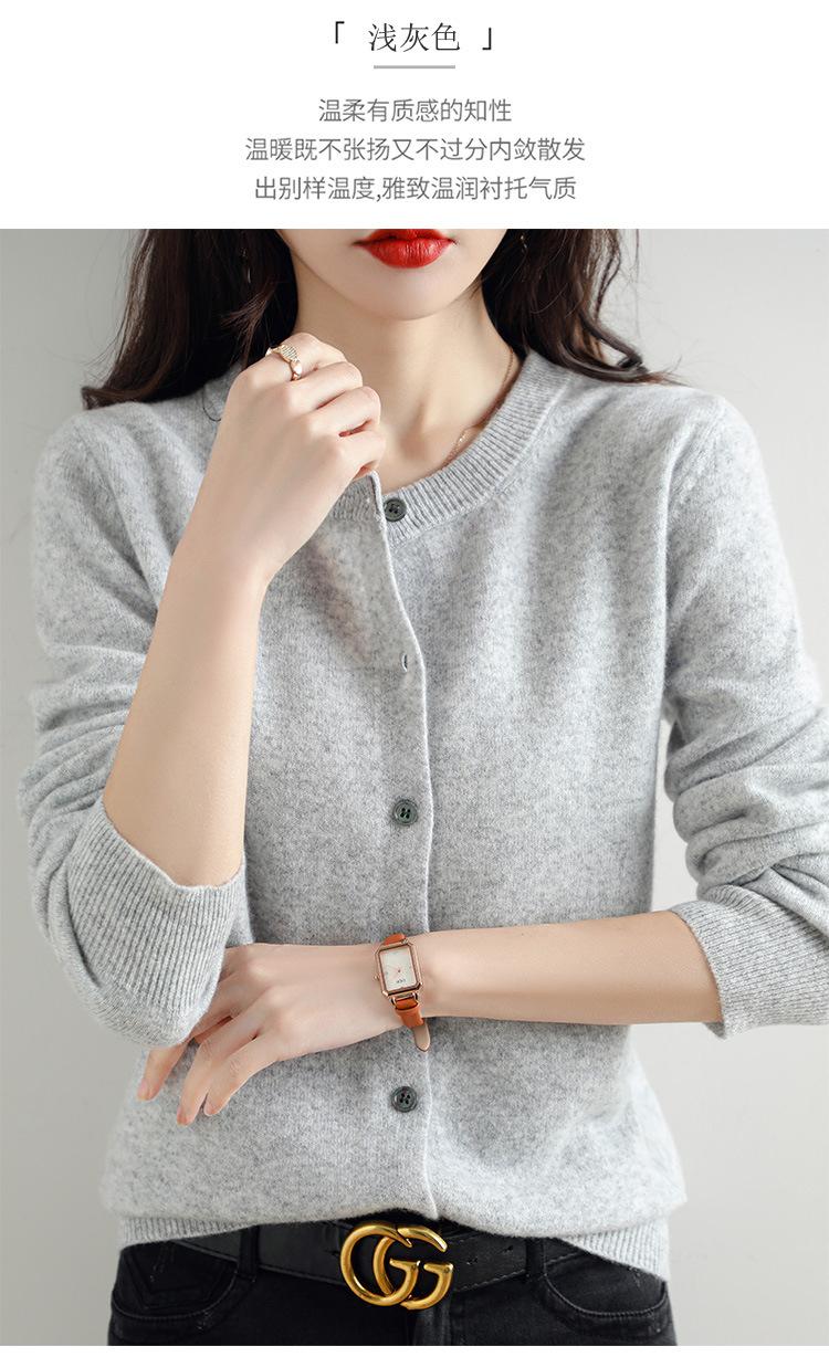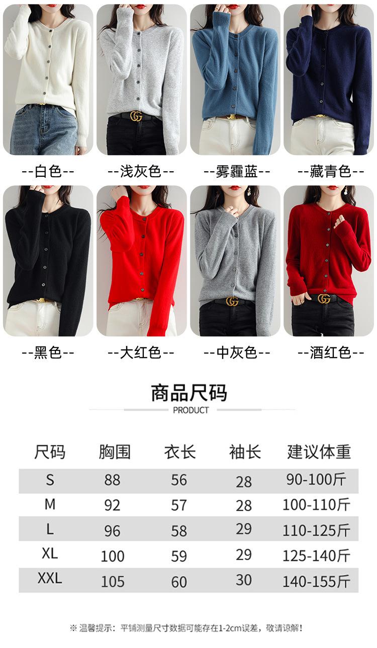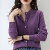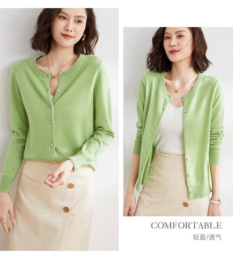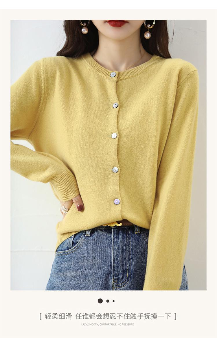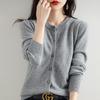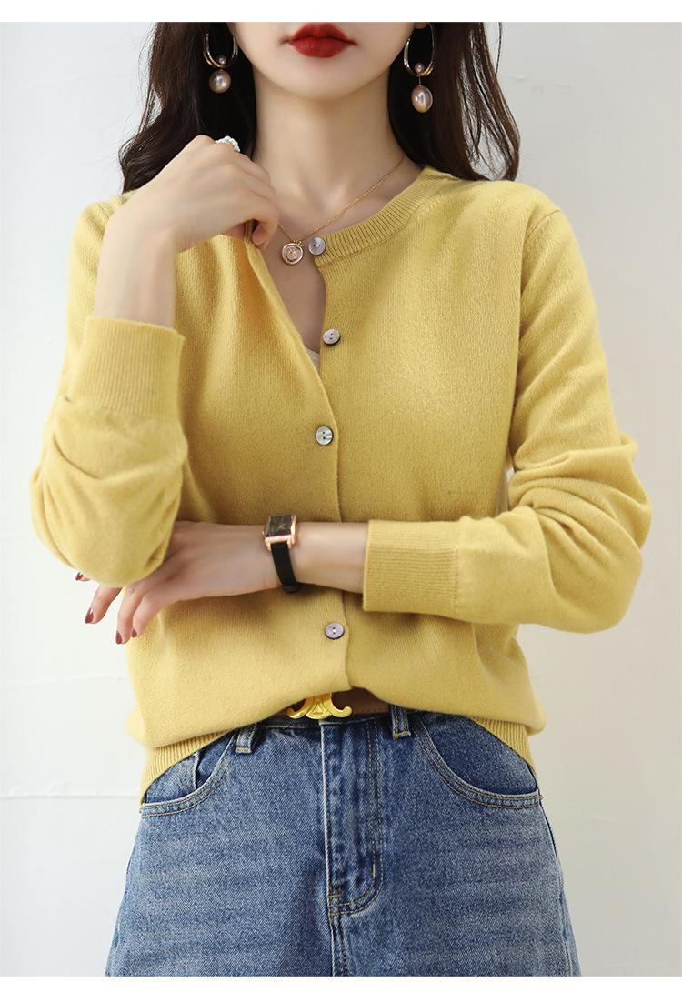 Cárdigan de Punto de Cuello Redondo Estilo Nuevo de Primavera y Otoño para Mujer, Manga Larga, Abrigo, Suéter de Punto, Color Sólido, Chaqueta Delgada para Mujer