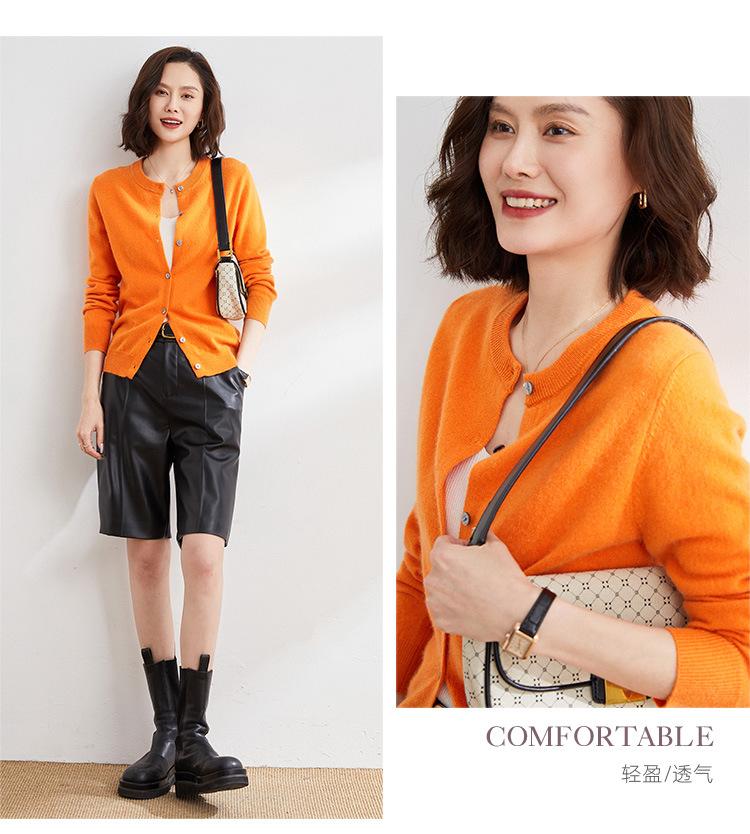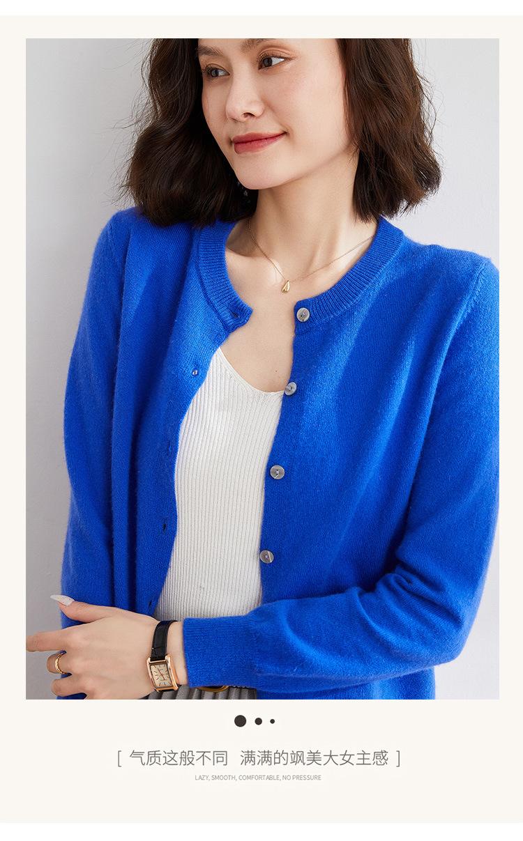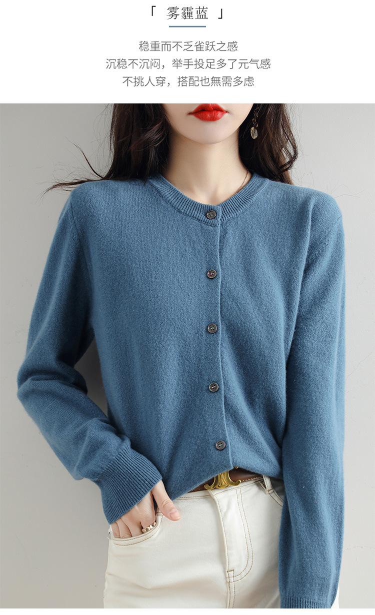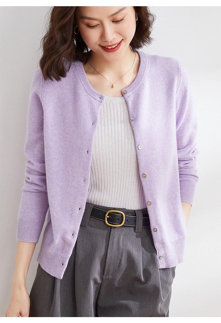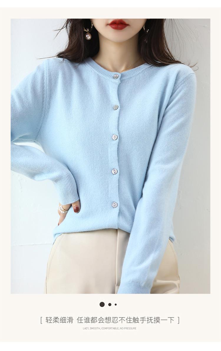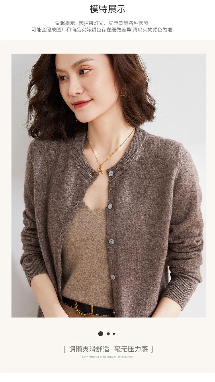Cárdigan de Punto de Cuello Redondo Estilo Nuevo de Primavera y Otoño para Mujer, Manga Larga, Abrigo, Suéter de Punto, Color Sólido, Chaqueta Delgada para Mujer