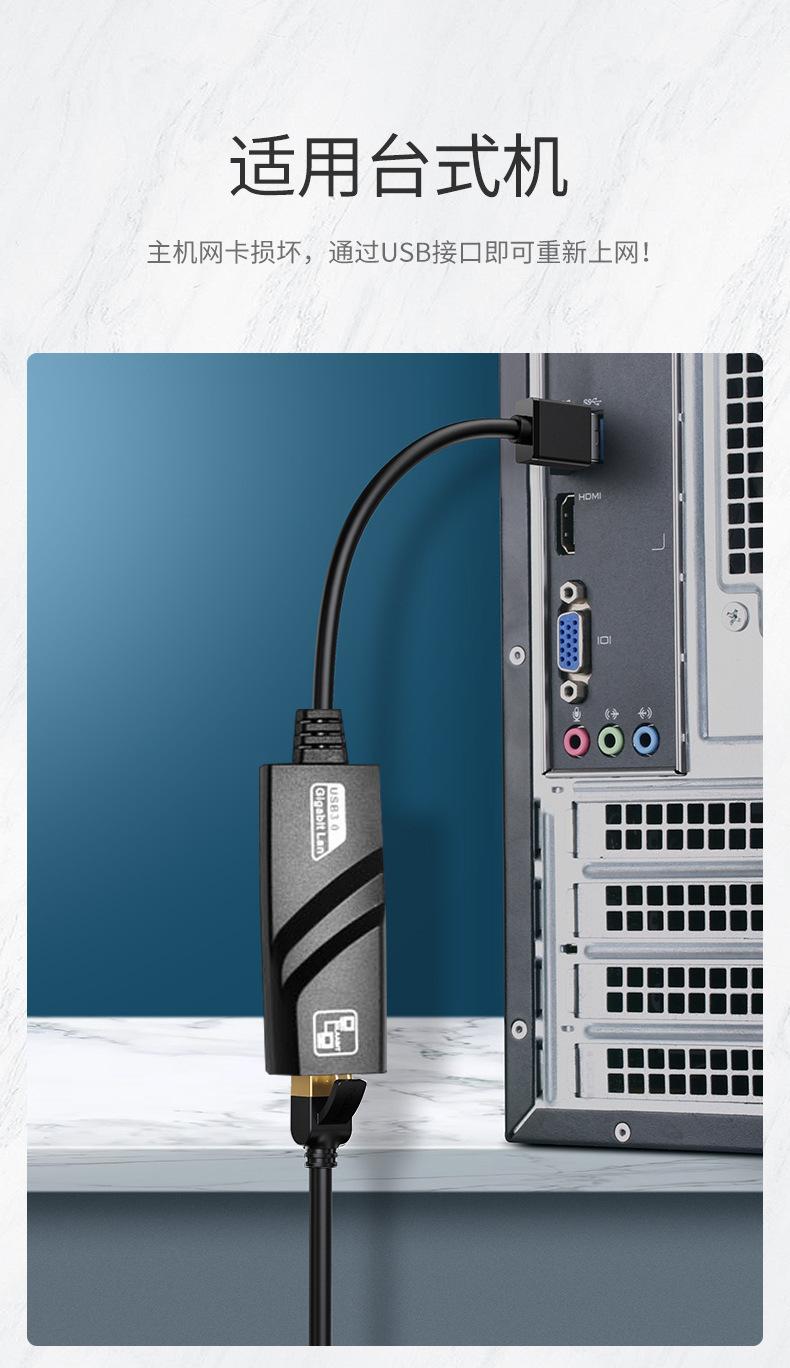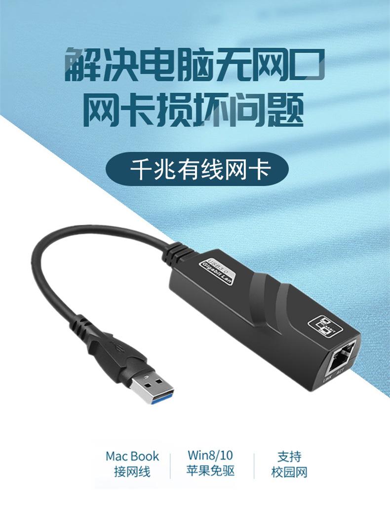 Tarjeta de red Gigabit USB, tarjeta de red Ethernet de 1000 M/s, tarjeta de red cableada inteligente USB a RJ45 sin controlador