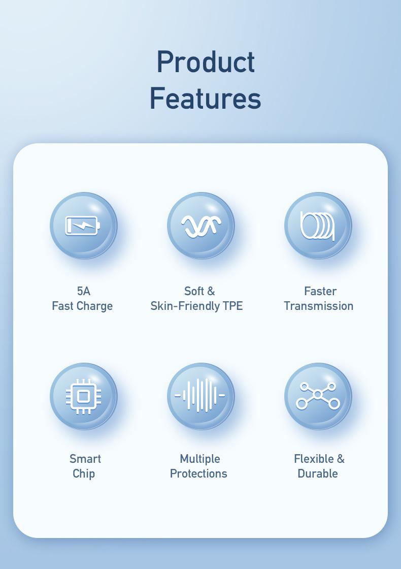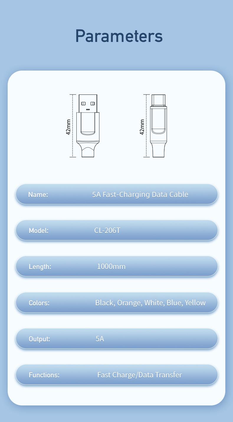 Cable de datos de carga rápida inteligente Awei para Apple Android 5A cable de datos de carga rápida de alta potencia CL-206