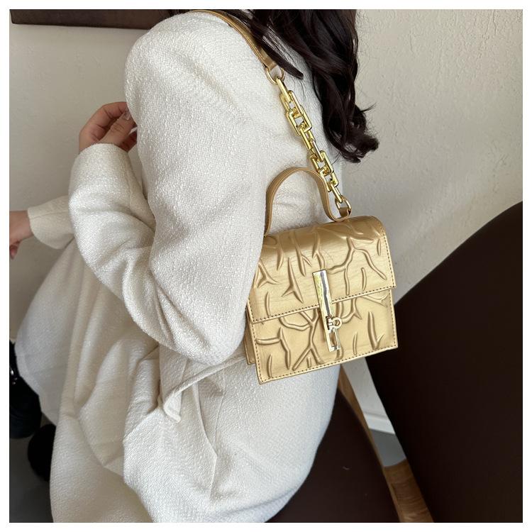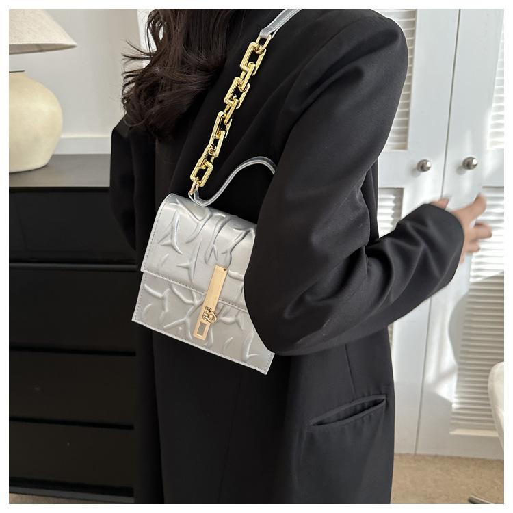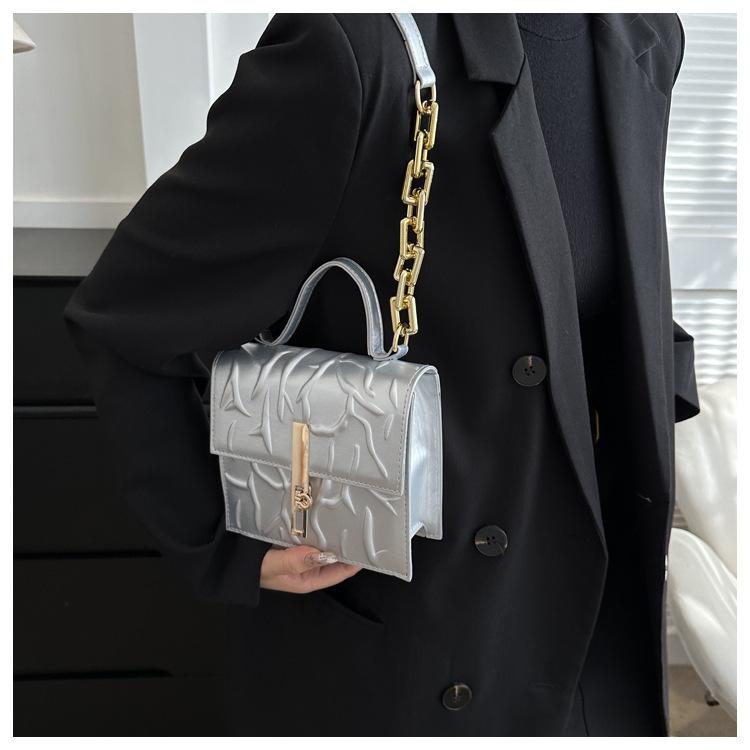 Bolso nuevo para mujer 2023, bolso de hombro moderno de estilo occidental fresco, bolso cuadrado pequeño de color sólido, bolso bandolera de cadena para llevar bajo el brazo