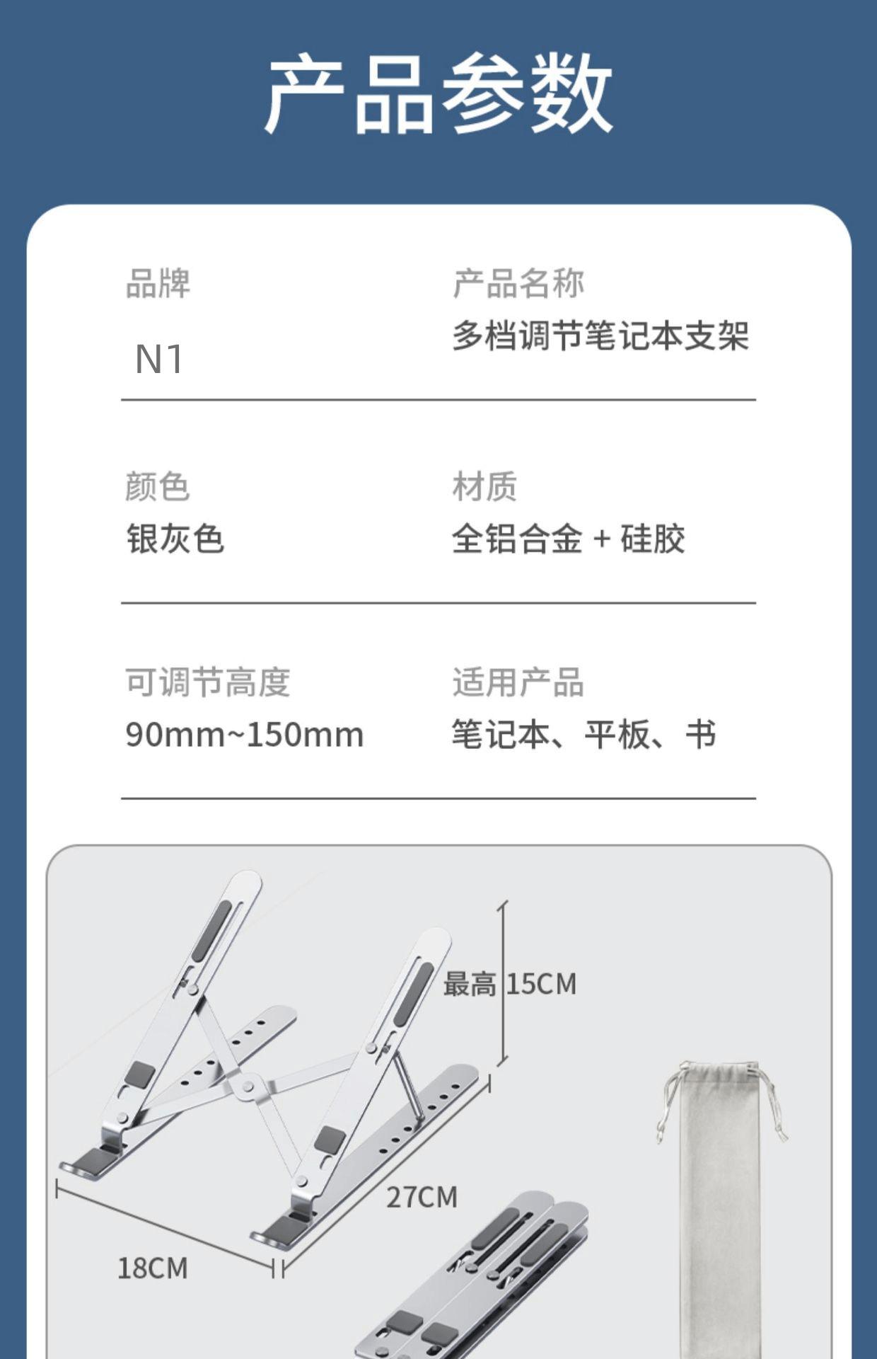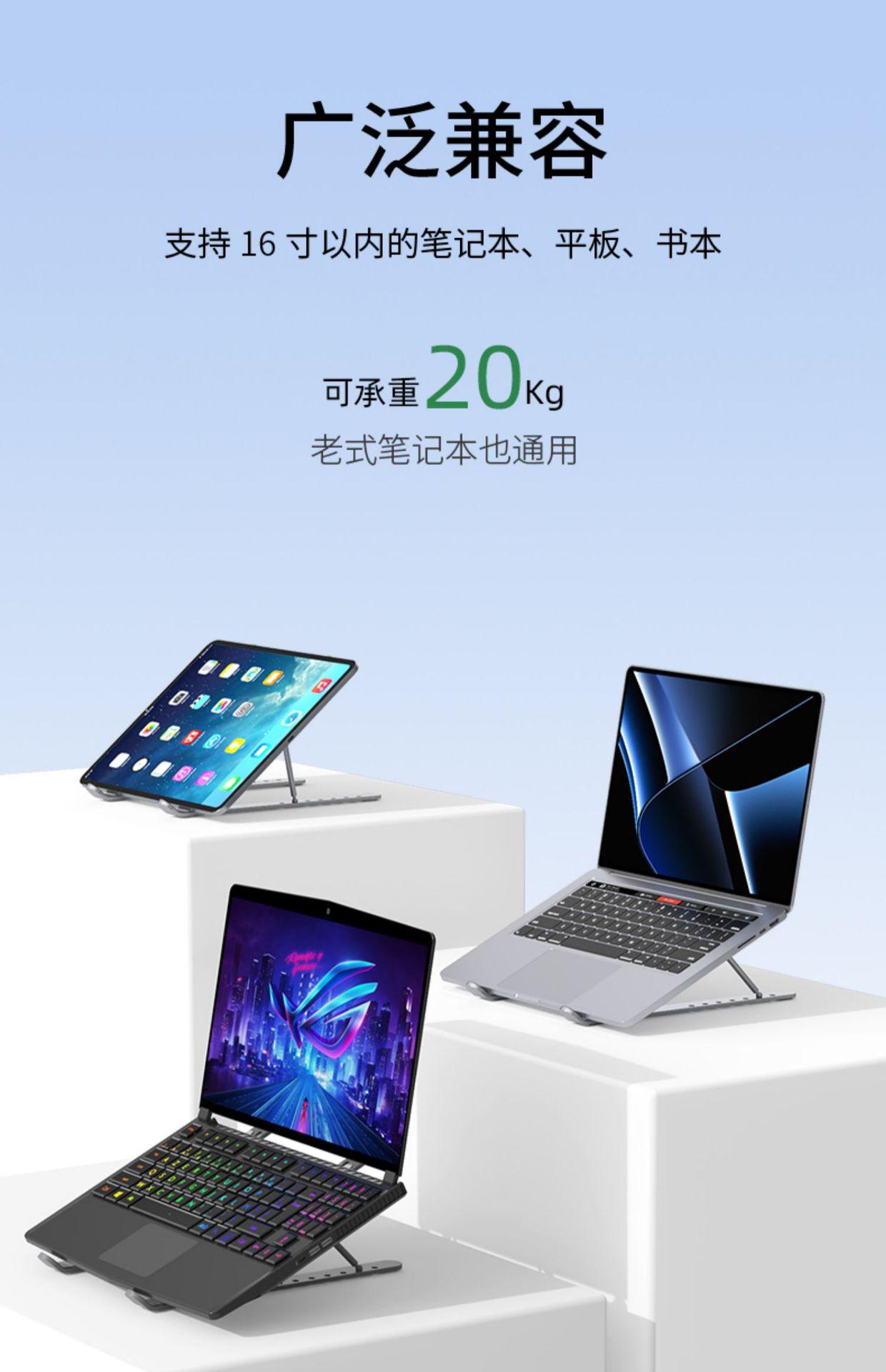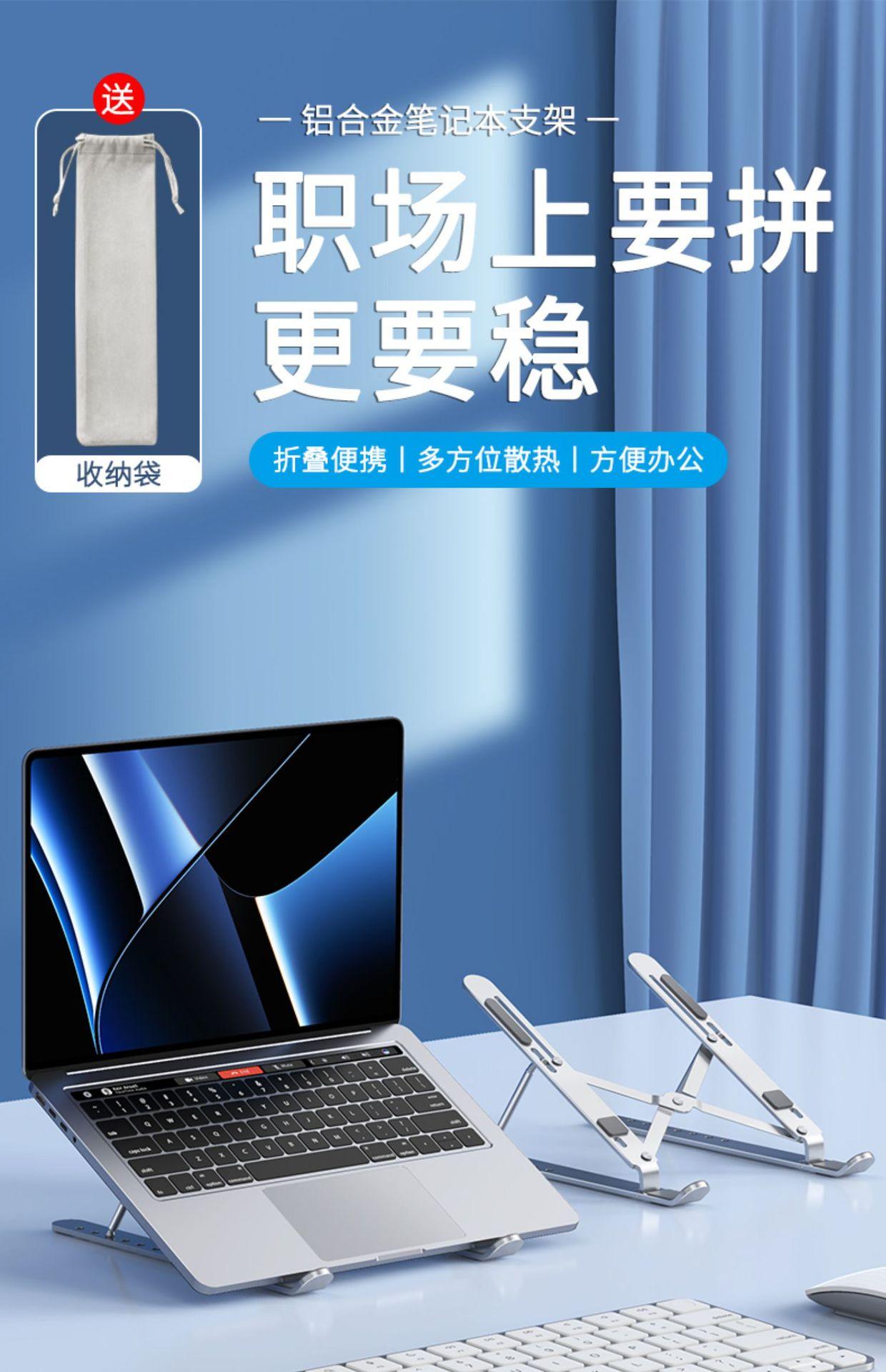 Soporte para computadora portátil de aleación de aluminio, plegable, con disipación de calor, ajustable, con elevación, venta al por mayor