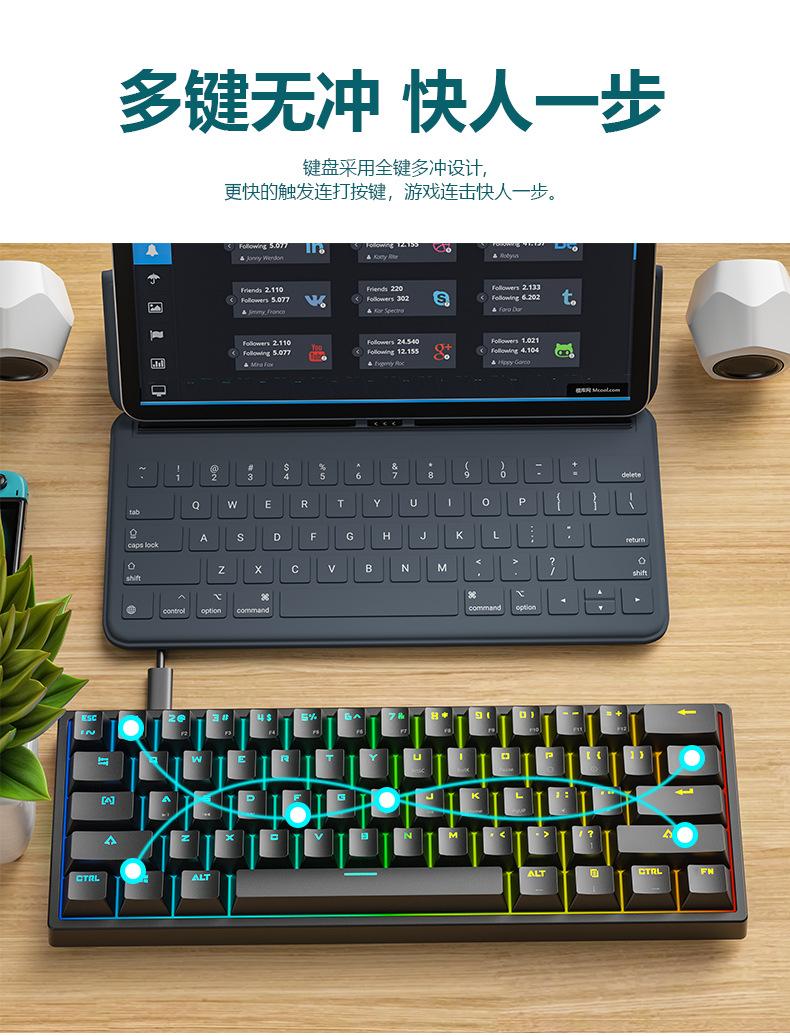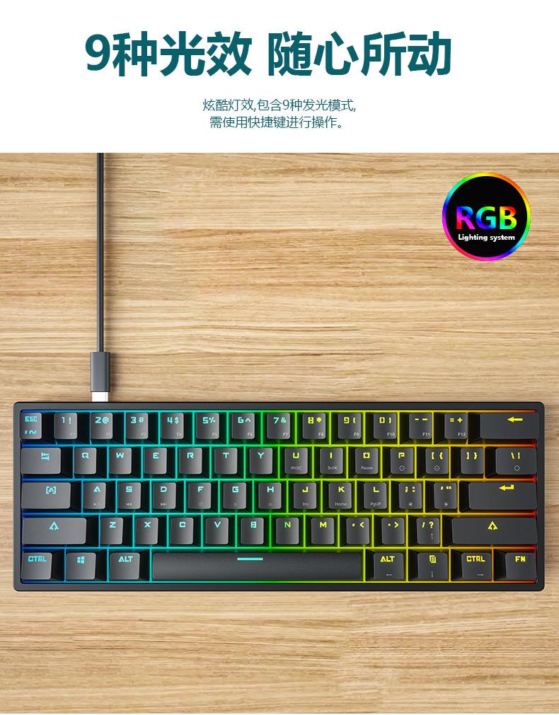Teclado mecánico al por mayor de fábrica Árabe alámbrico eje verde eje rojo e-sports para juegos laptop