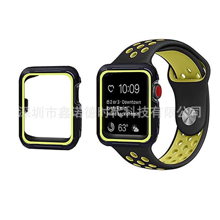 Adecuado para Apple Watch de 4.ª generación, funda protectora de silicona de dos colores. Adecuado para iWatch, funda protectora de TPU de dos colores, marco protector de reloj.
