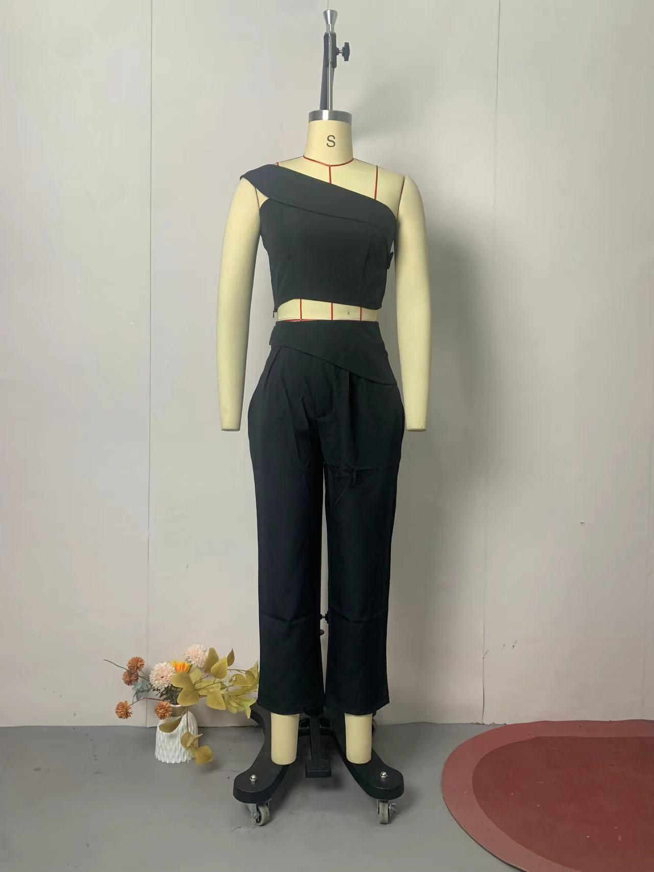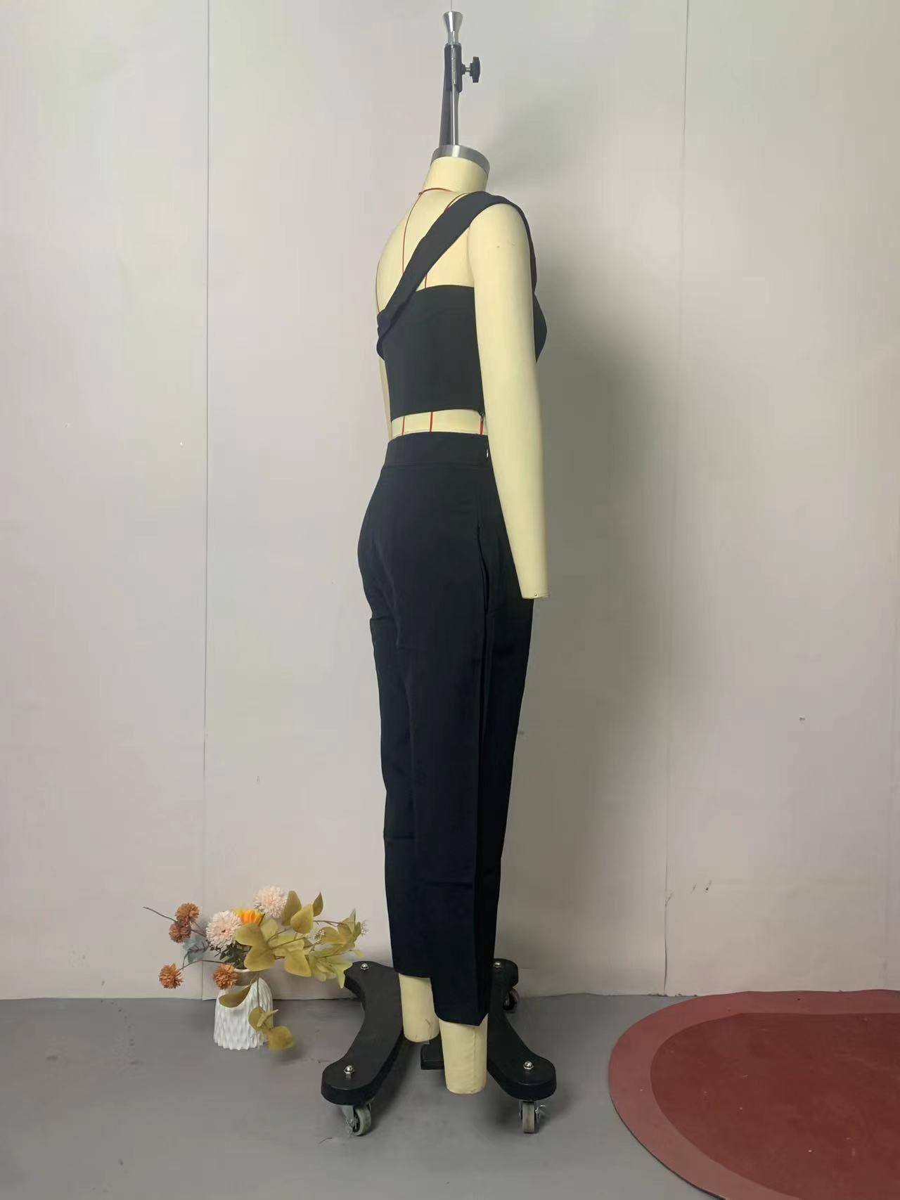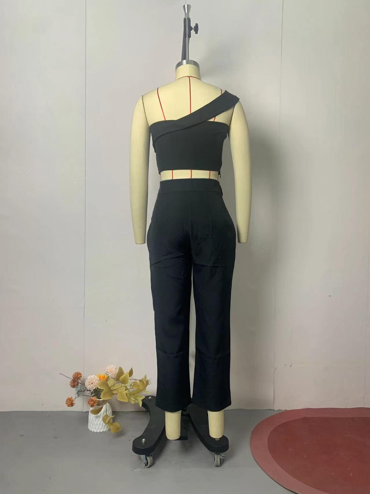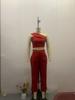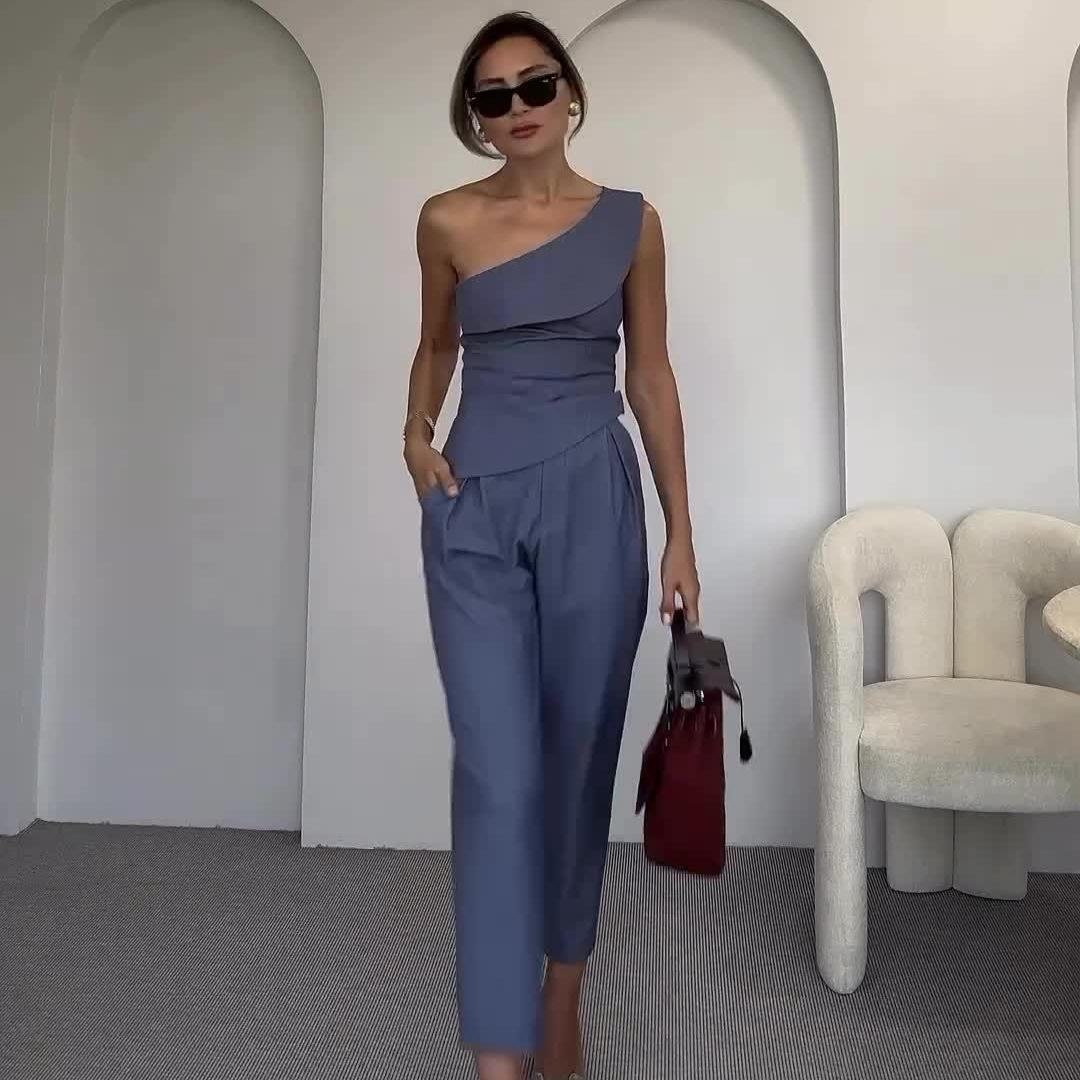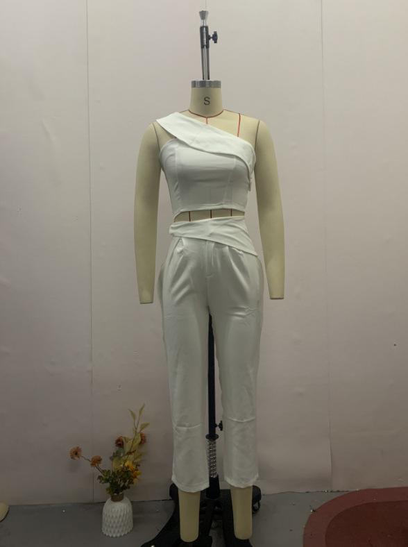 2024 Verano Nuevo Europeo y Americano Amazon Transfronterizo Spice Girls Top Ajustado con Cuello Inclinado y Cuello Halter Set de Pantalones Rectos de Cintura Alta