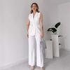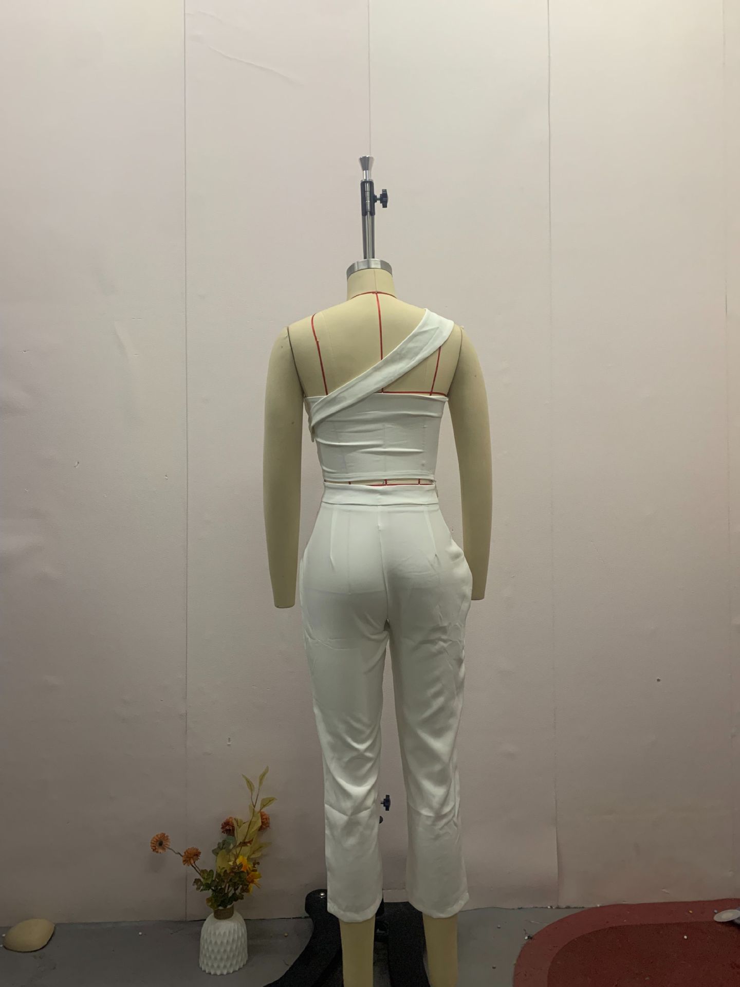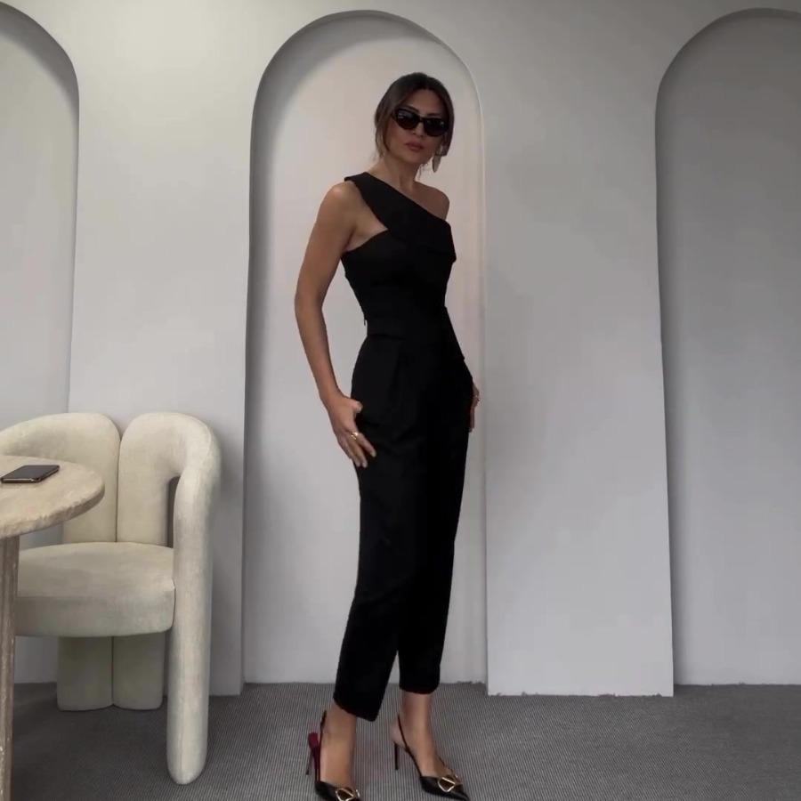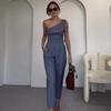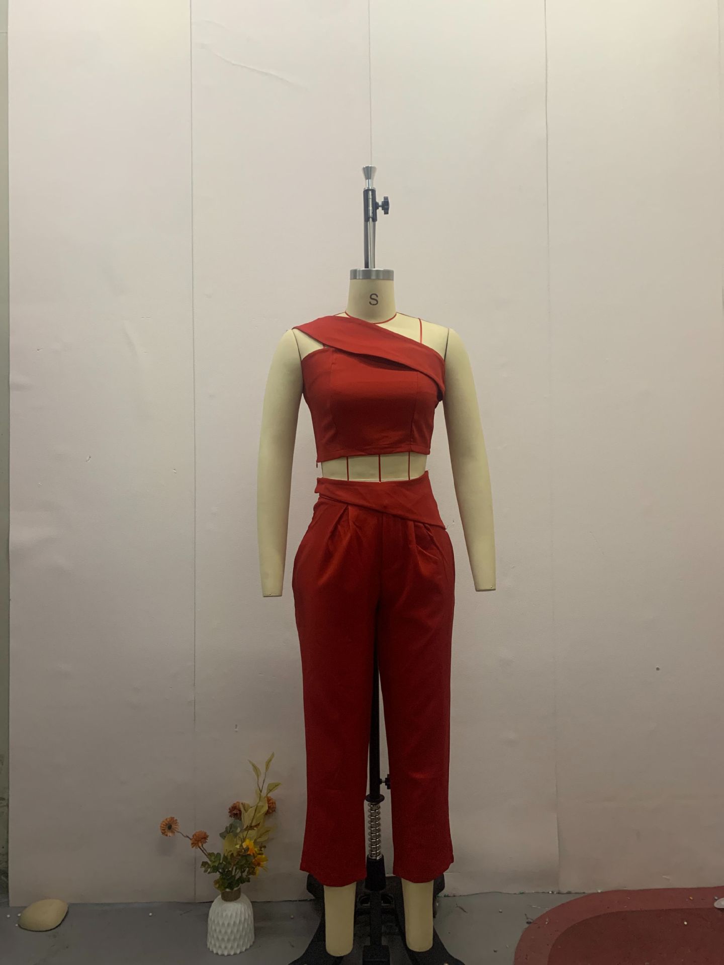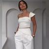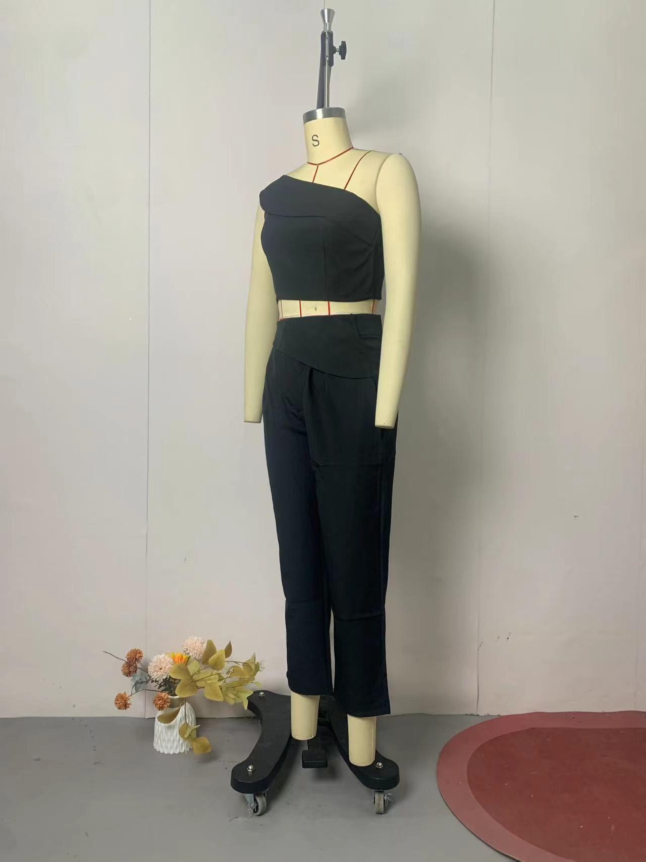 2024 Verano Nuevo Europeo y Americano Amazon Transfronterizo Spice Girls Top Ajustado con Cuello Inclinado y Cuello Halter Set de Pantalones Rectos de Cintura Alta