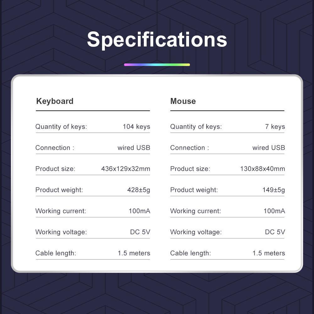 Keyboard; 442*133*30mm mouse: 130*88*40mm