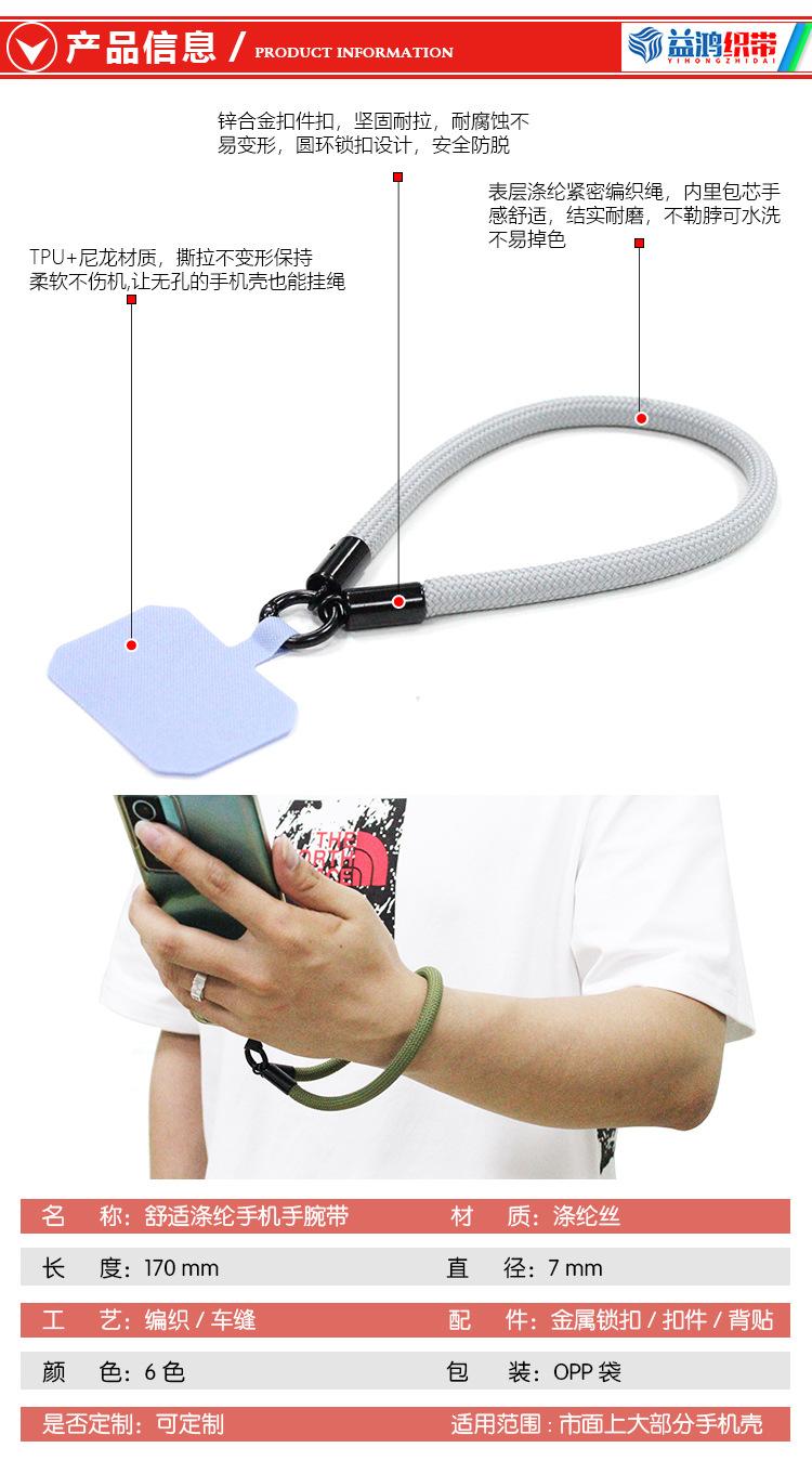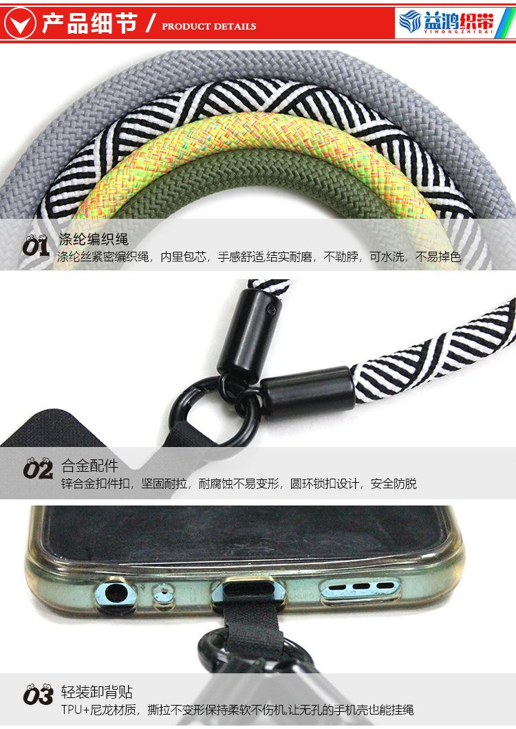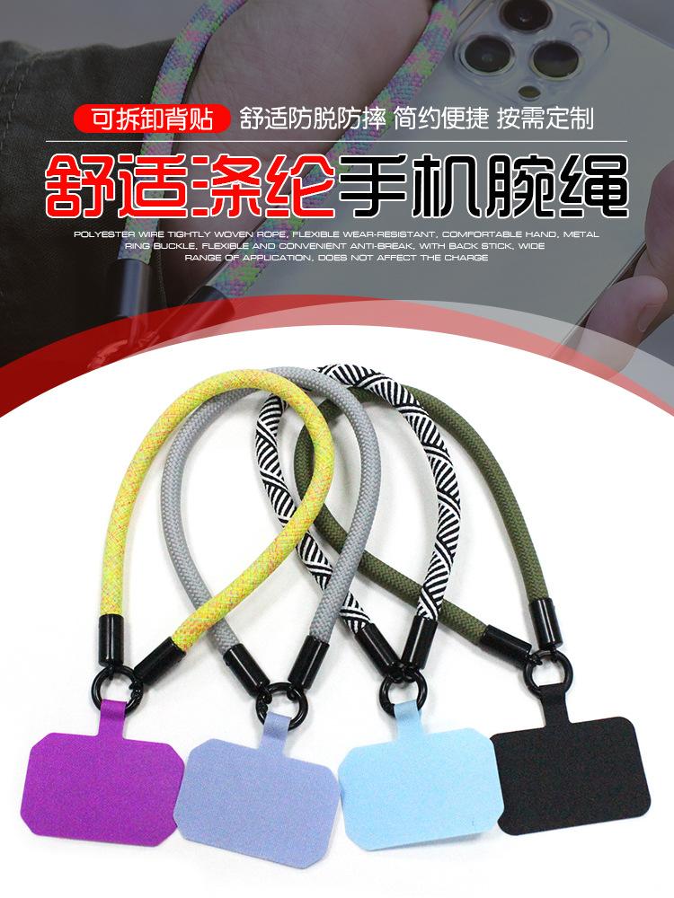 Cordón para teléfono móvil de dos colores de 7 mm con anilla de aleación tejida y llave corta para la muñeca.