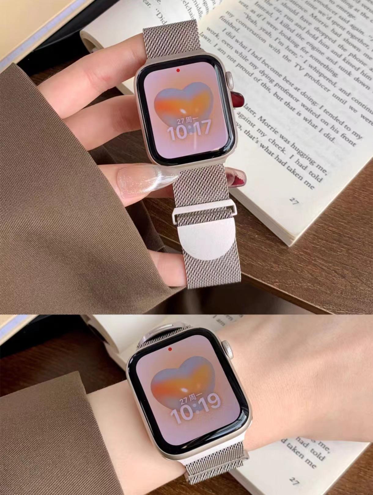 Adecuado para Apple Milano Correa Bonita Doble Sección Hebilla Semicircular Correa Adhesiva Magnética Adecuado para Correa iwatch