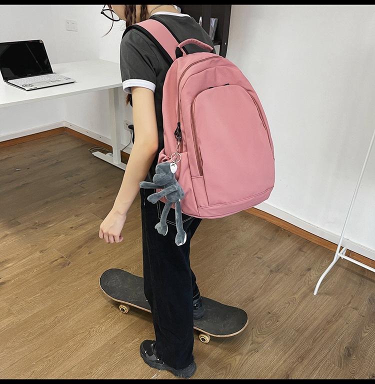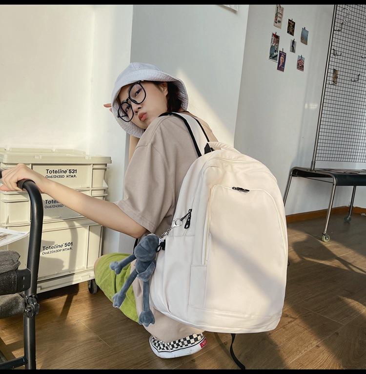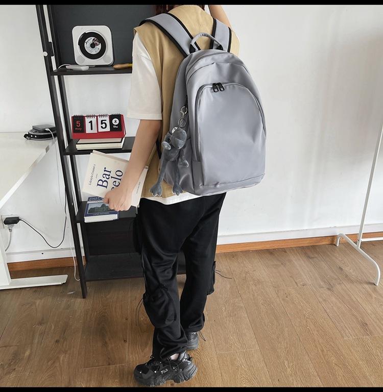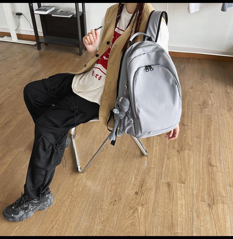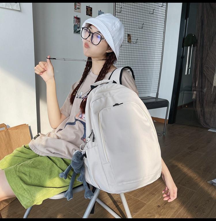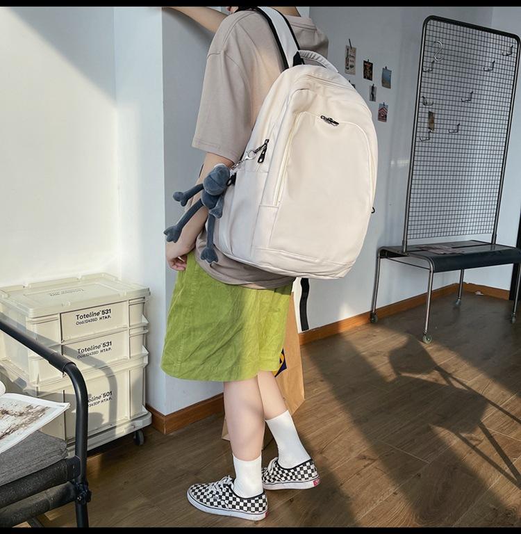 Mochila de Nailon Monocromática Simple para Mujer Estilo Coreano Mochila Escolar para Estudiante de Secundaria y Universidad Estilo Sin Estampado Gran Capacidad Mochila para Computadora para Hombre