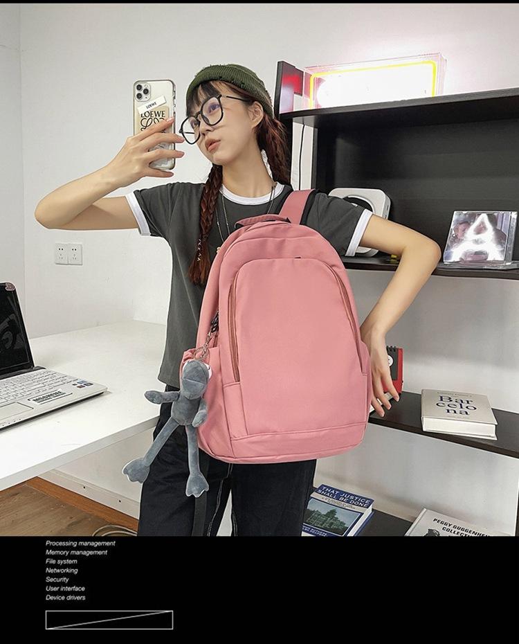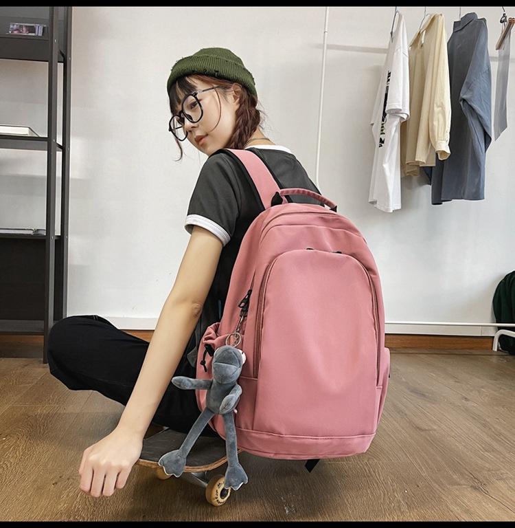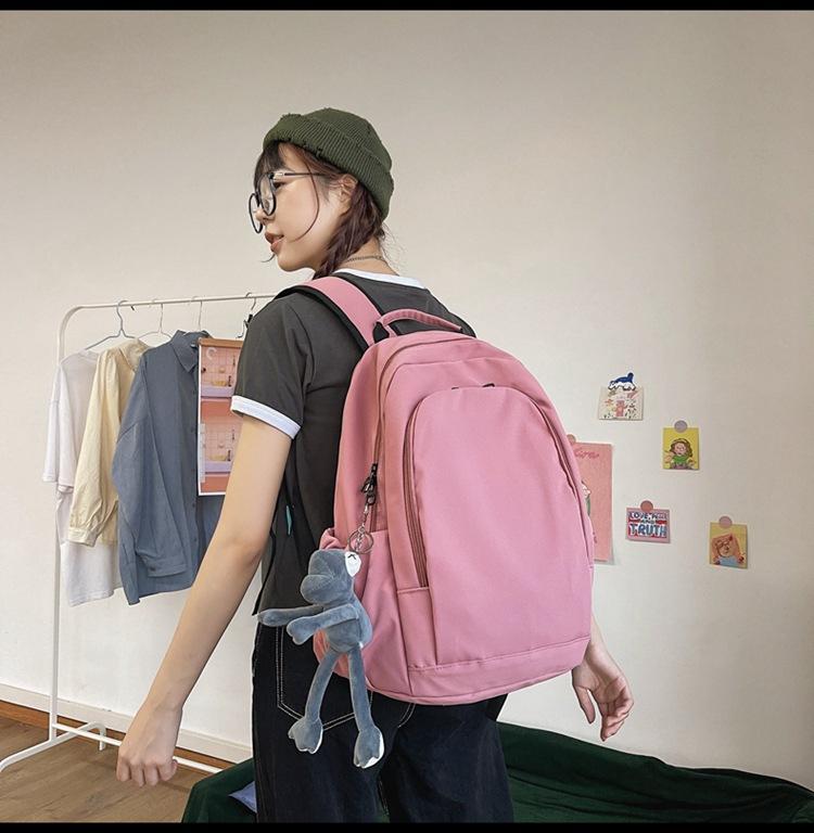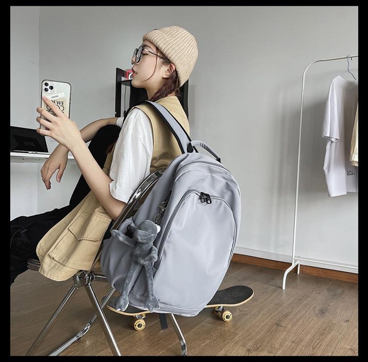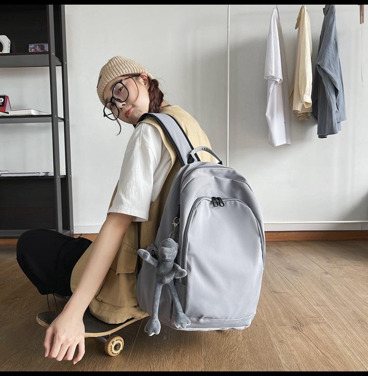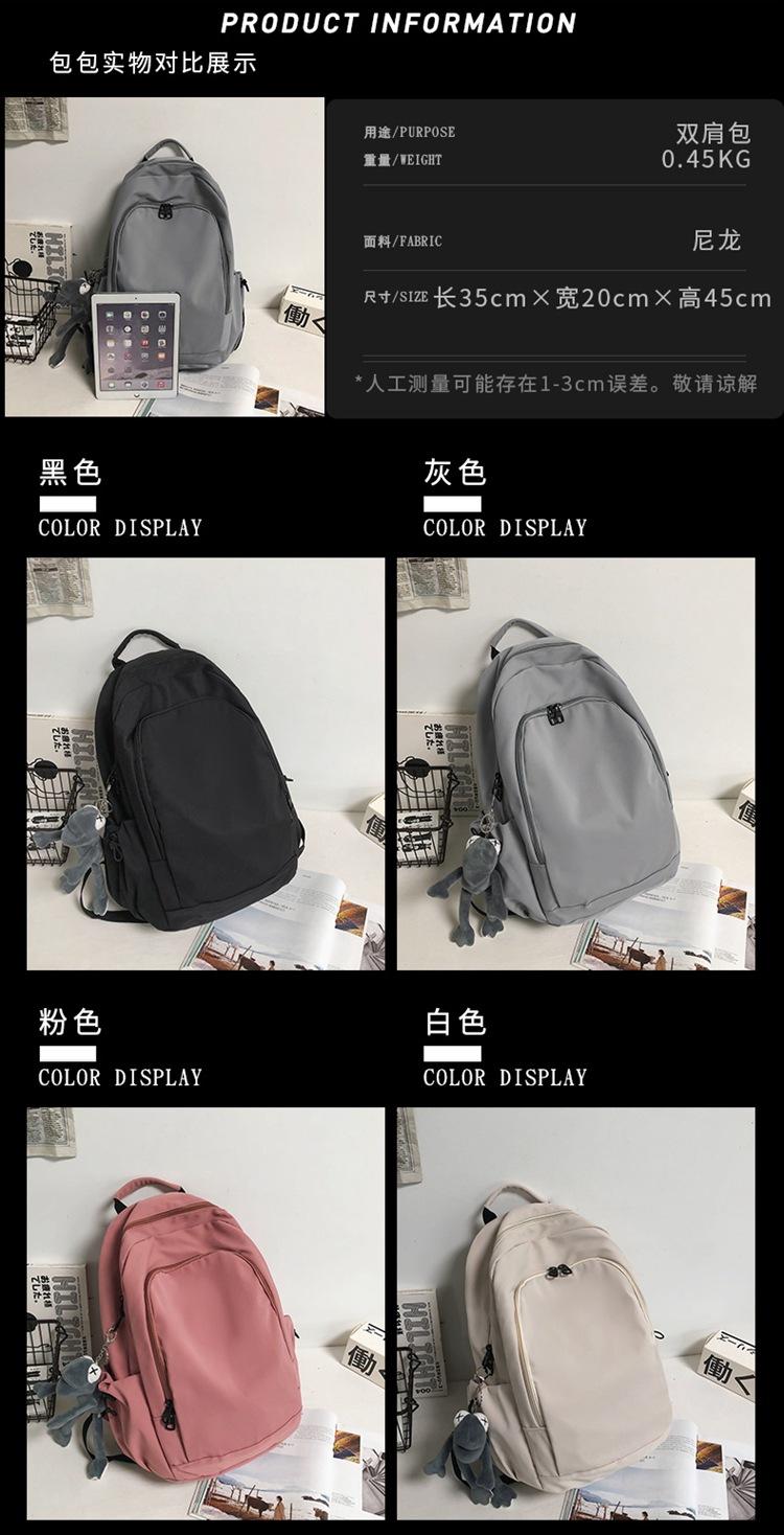 Mochila de Nailon Monocromática Simple para Mujer Estilo Coreano Mochila Escolar para Estudiante de Secundaria y Universidad Estilo Sin Estampado Gran Capacidad Mochila para Computadora para Hombre