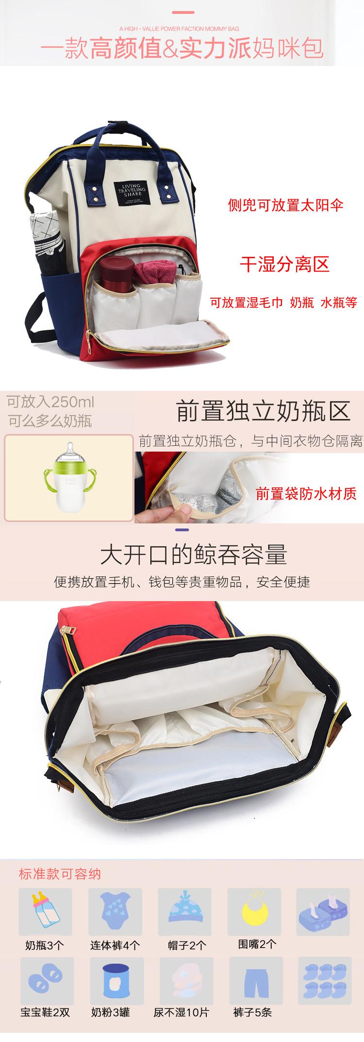 2022 Nueva Moda Color Contraste Bolsa de Mamá Bolsa de Mamá de Gran Capacidad Ropa de Dama y Bolsa de Bebé Mochila para Biberones Mochila para Pañales