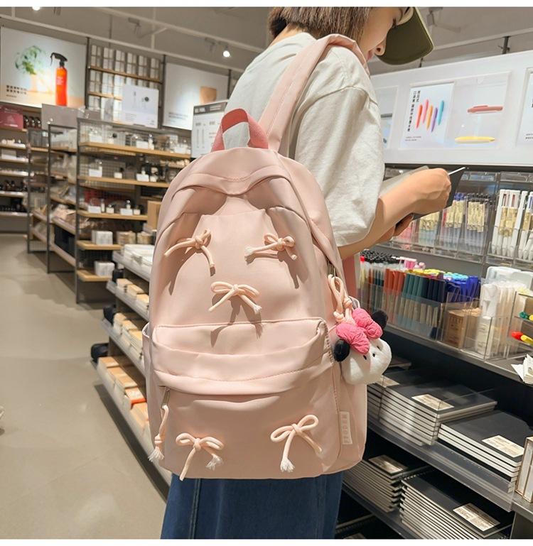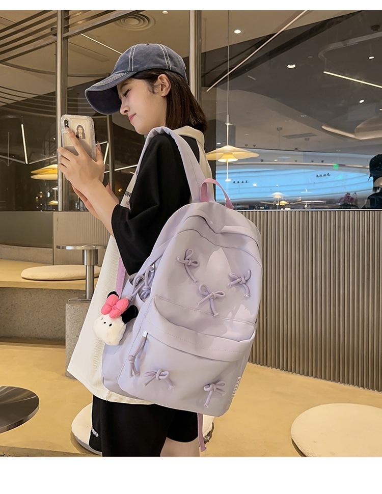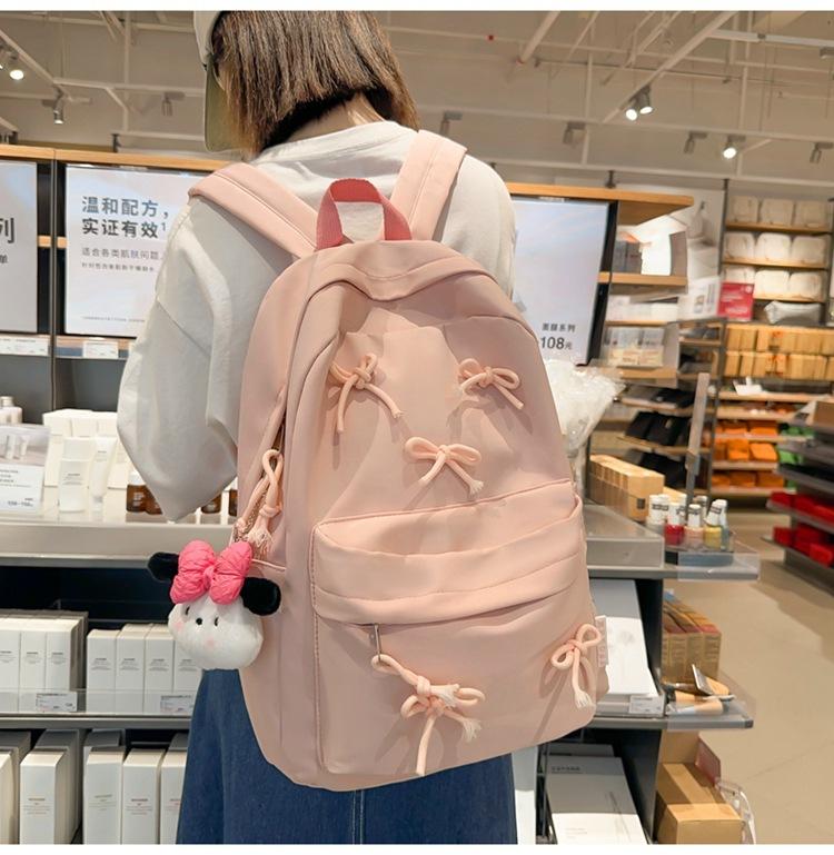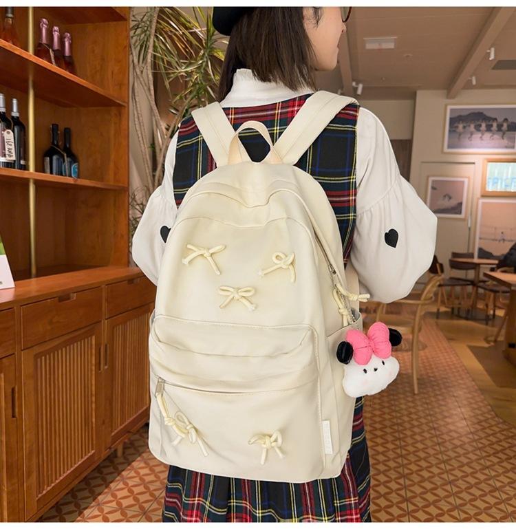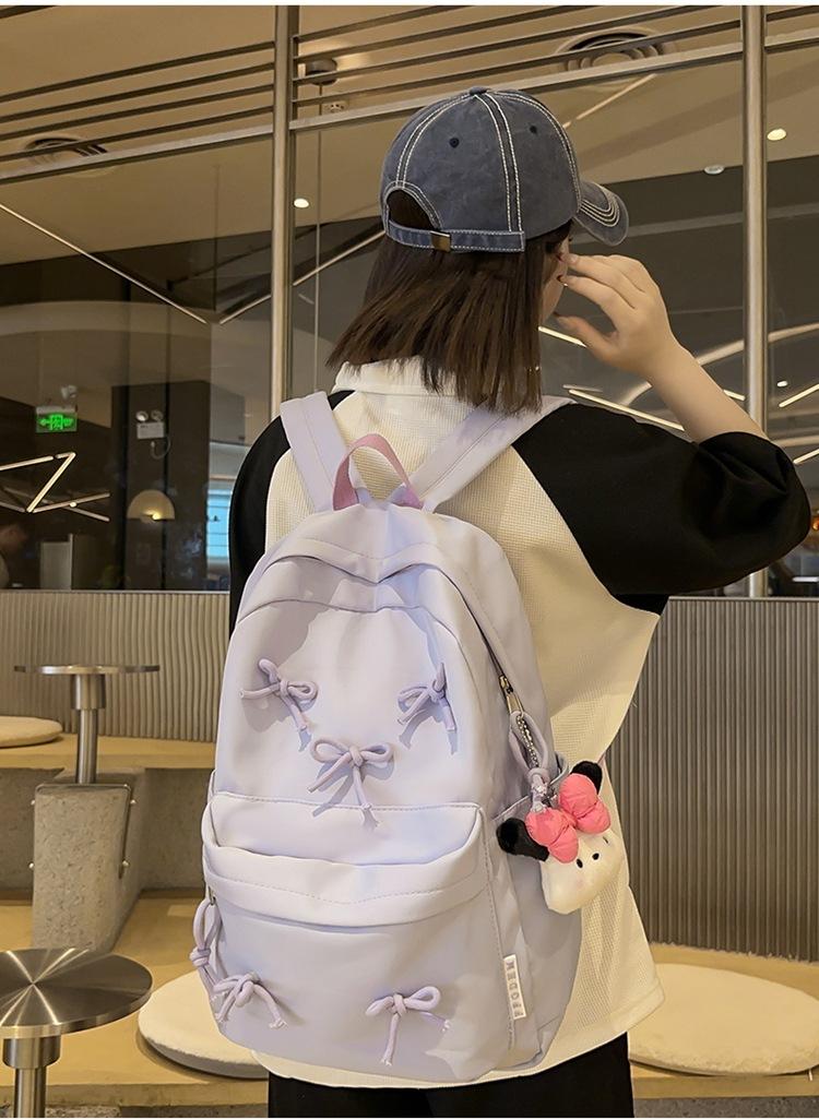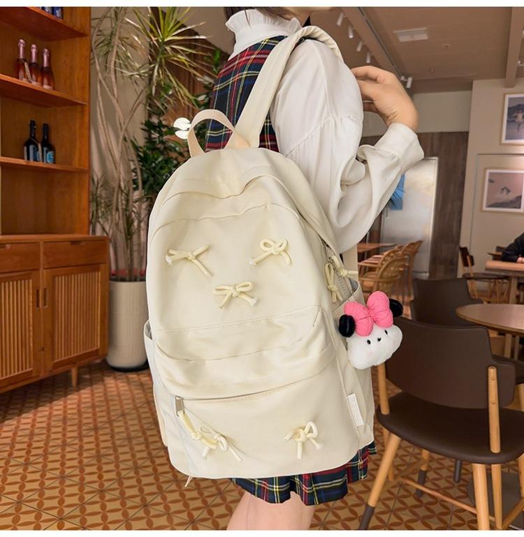Mochila Escolar de Gran Capacidad para Mujer Mochila para Estudiante Universitario para Mujer Verano Estilo Coreano Mochila Linda con Lazo Mochila para Estudiante de Secundaria Bolsa para Computadora