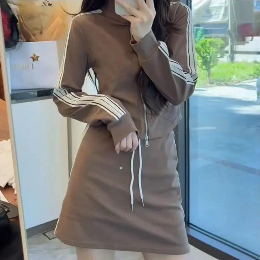 Traje Deportivo para Chicas Calientes Nuevo Otoño para Mujer Pequeño Casual Calle Frita Chaqueta Corta Top Falda Conjunto de Dos Piezas