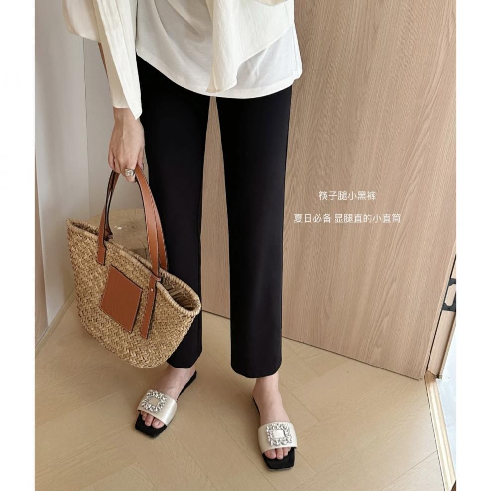 Pantalones rectos de cintura alta para mujer, estilo coreano, novedad de verano 2024, con efecto adelgazante vertical y nueve puntos.