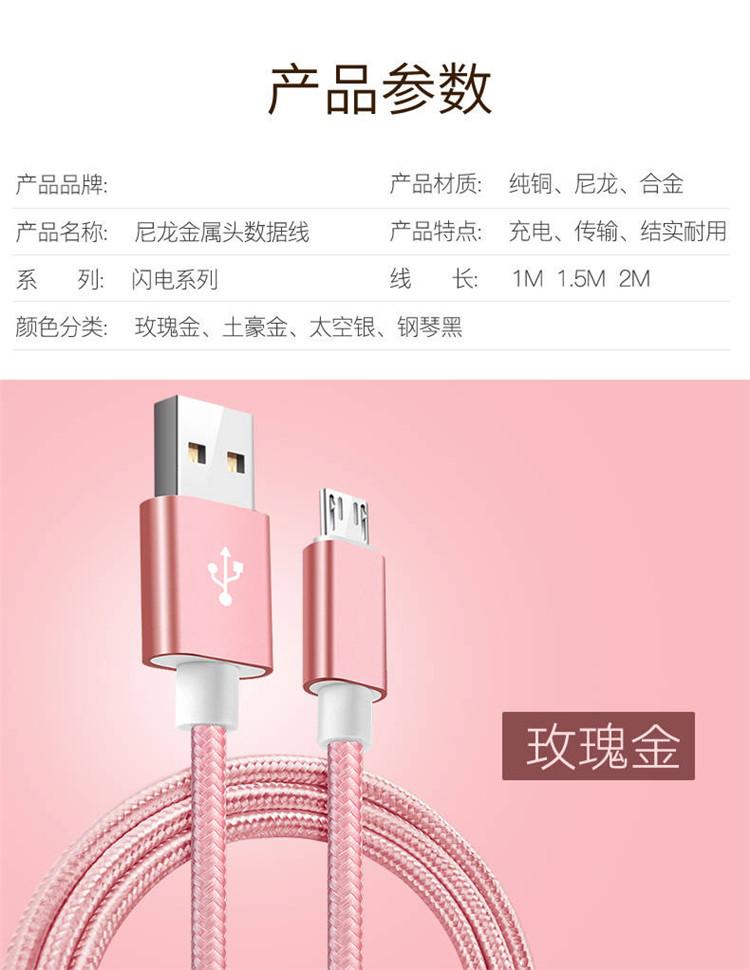 Braided data cable-Tuhao gold, Braided data cable-rose gold, Braided data cable-Black, Braided data cable-Silv...