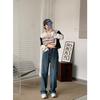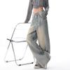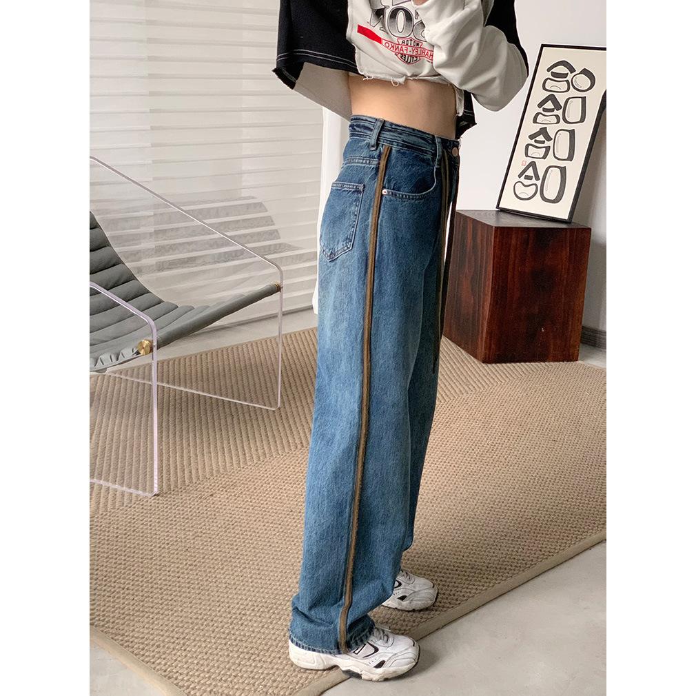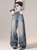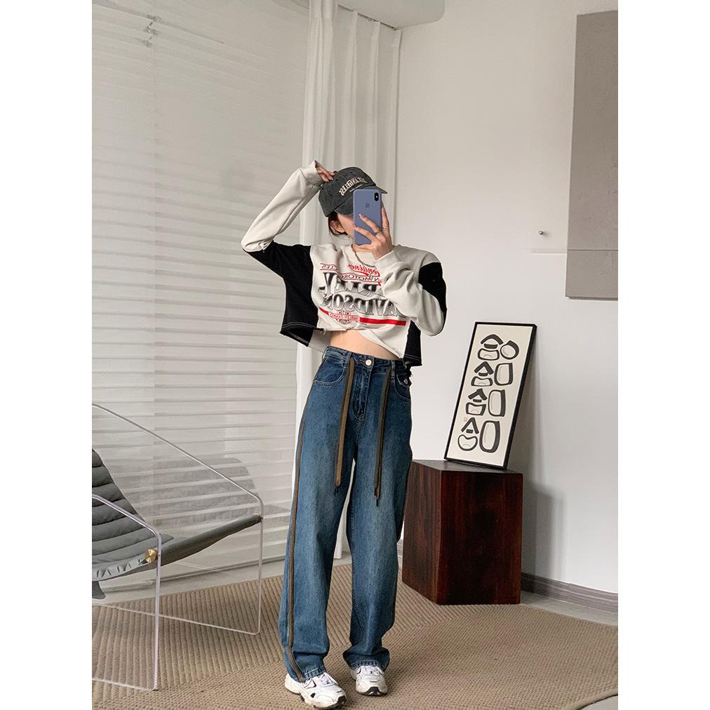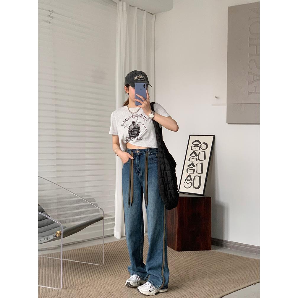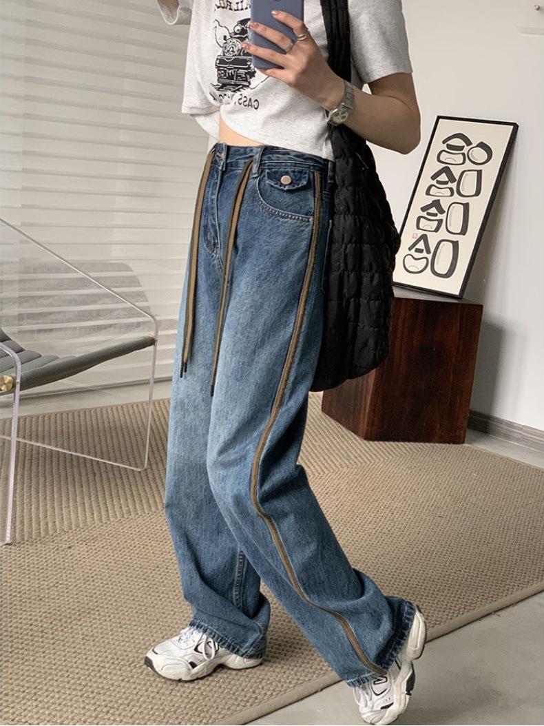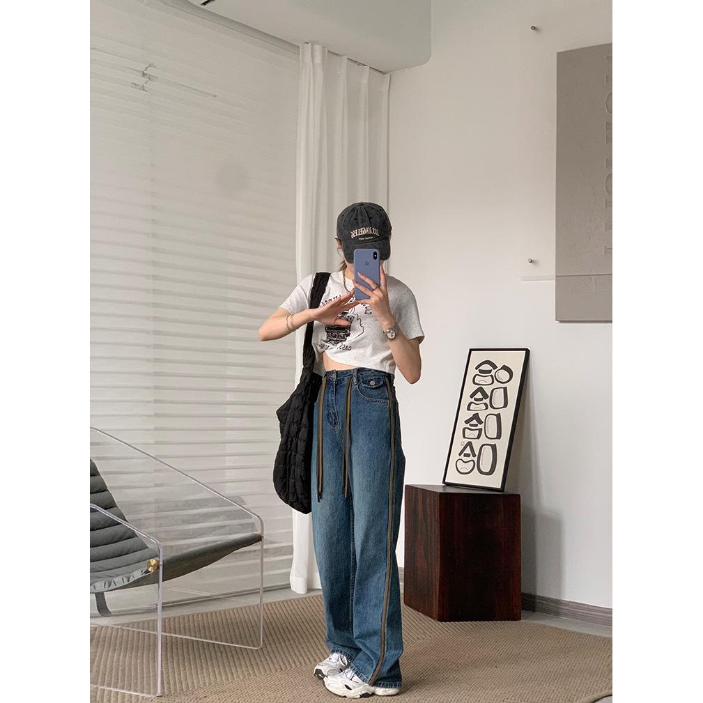 Jeans de pierna recta de talle alto para mujer 2025 Primavera Nuevo Suelto Pera Retro Cordón Largo hasta el suelo Jeans de pierna ancha