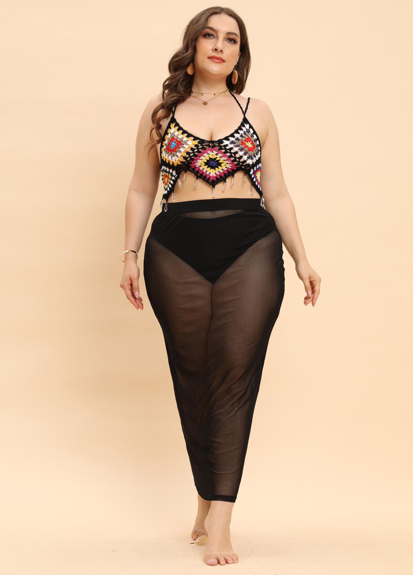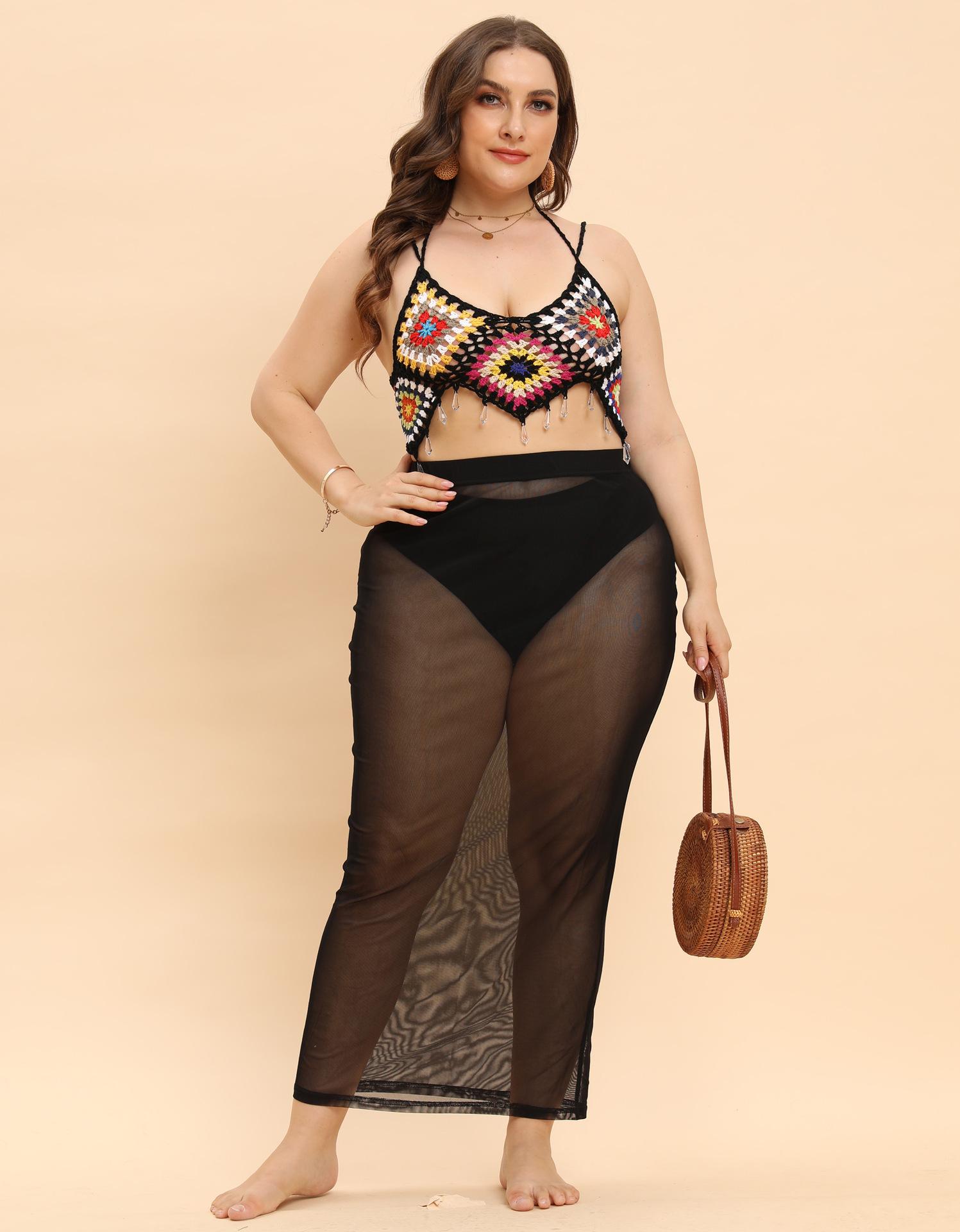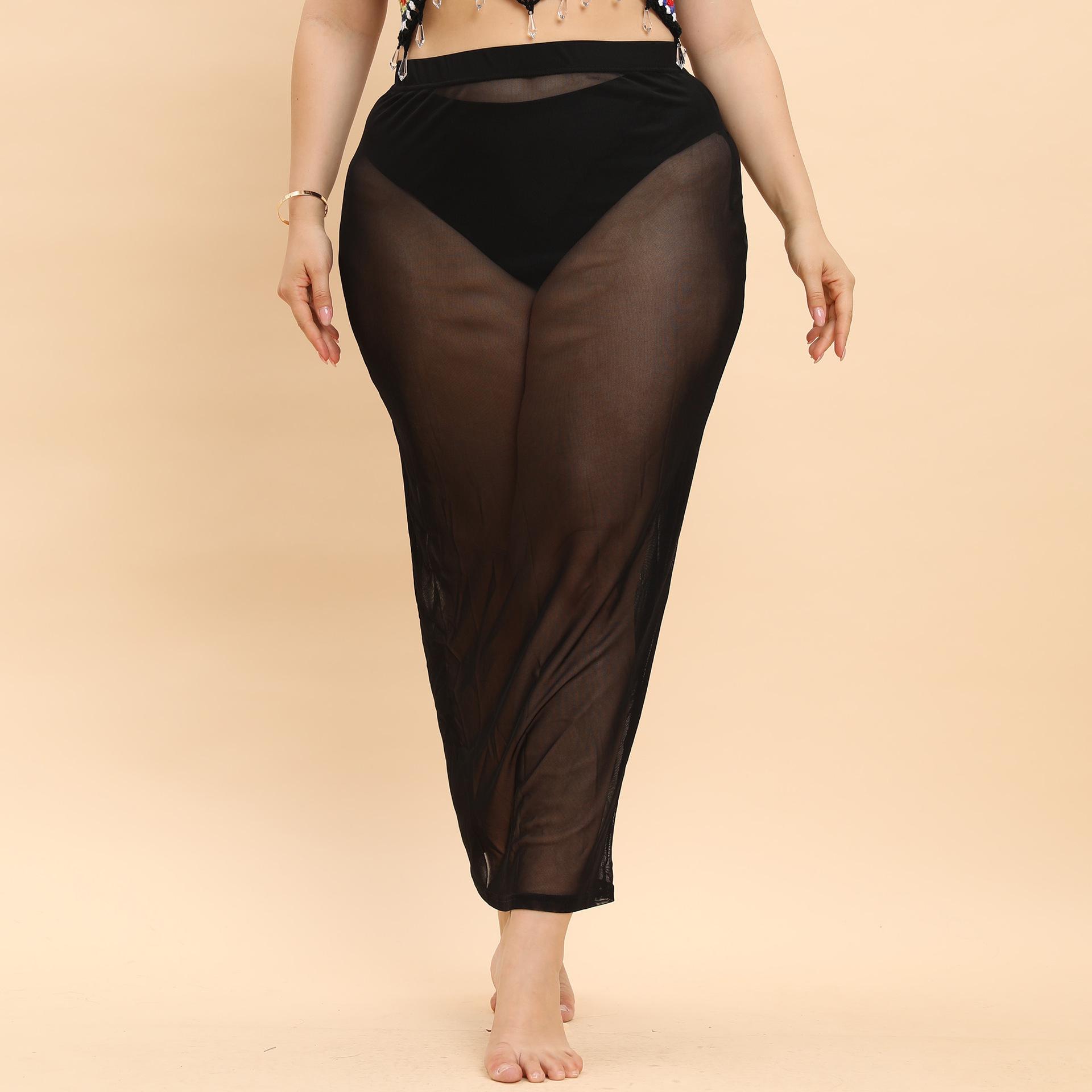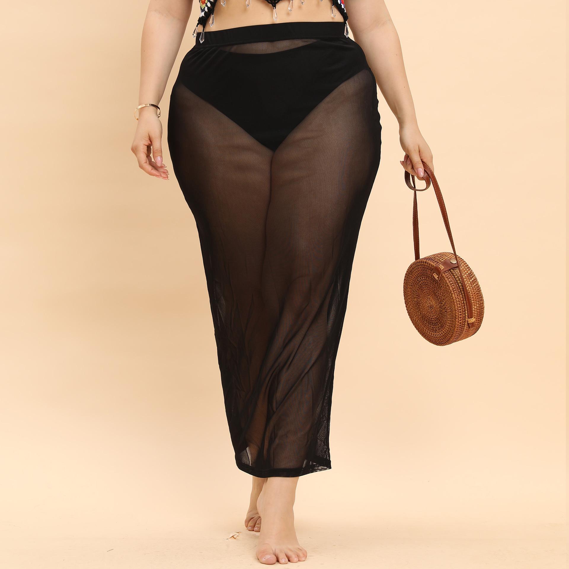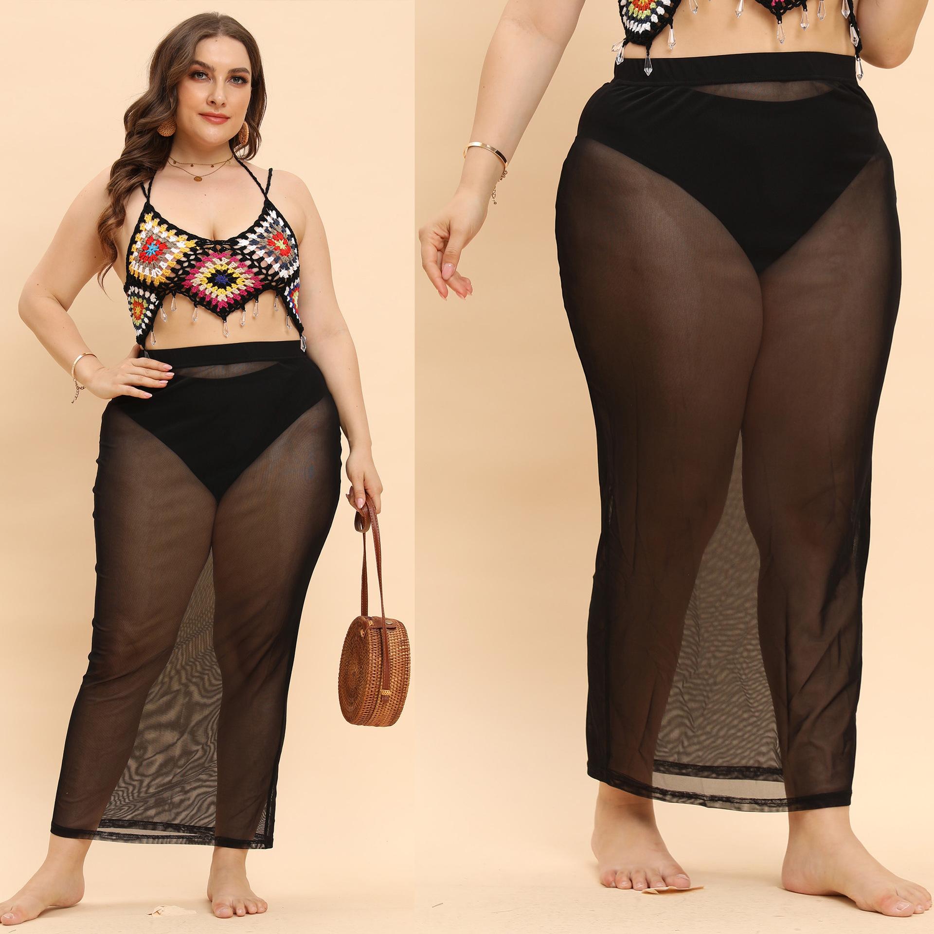 Falda de Playa Europea y Americana Talla Grande para Mujer Transfronteriza Estilo Resort Costero Sexy Falda de Malla Transparente 200450