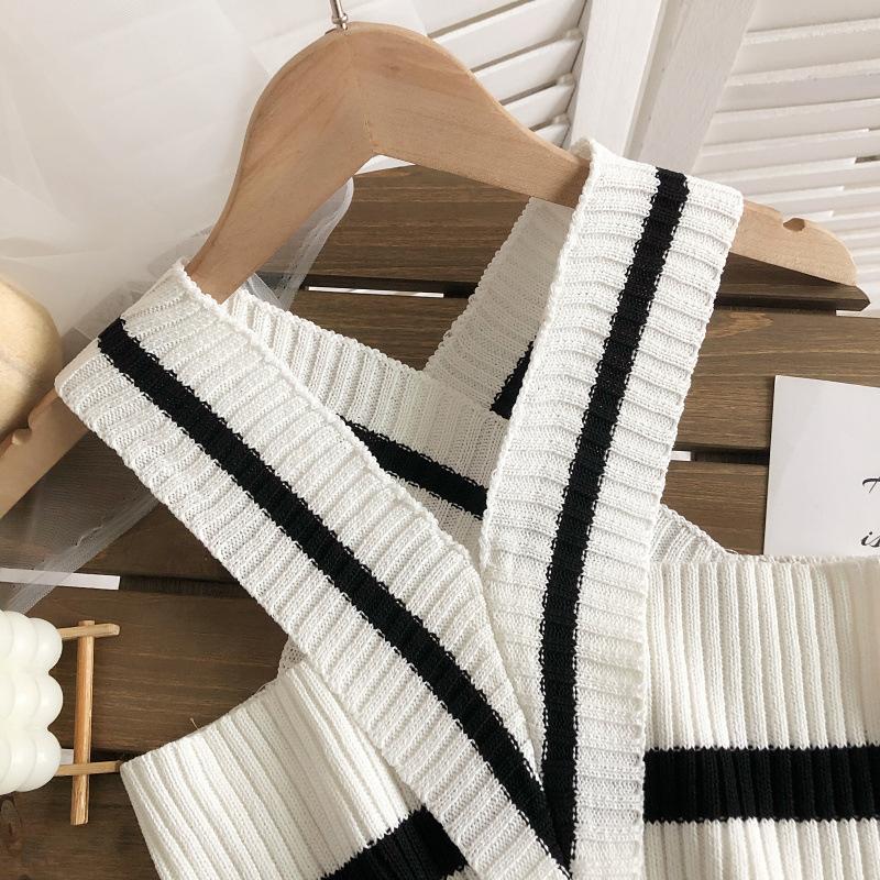 Novedad de verano 2023, camiseta retro pequeña sin espalda con pecho abierto, chaleco corto sin mangas de punto para mujer