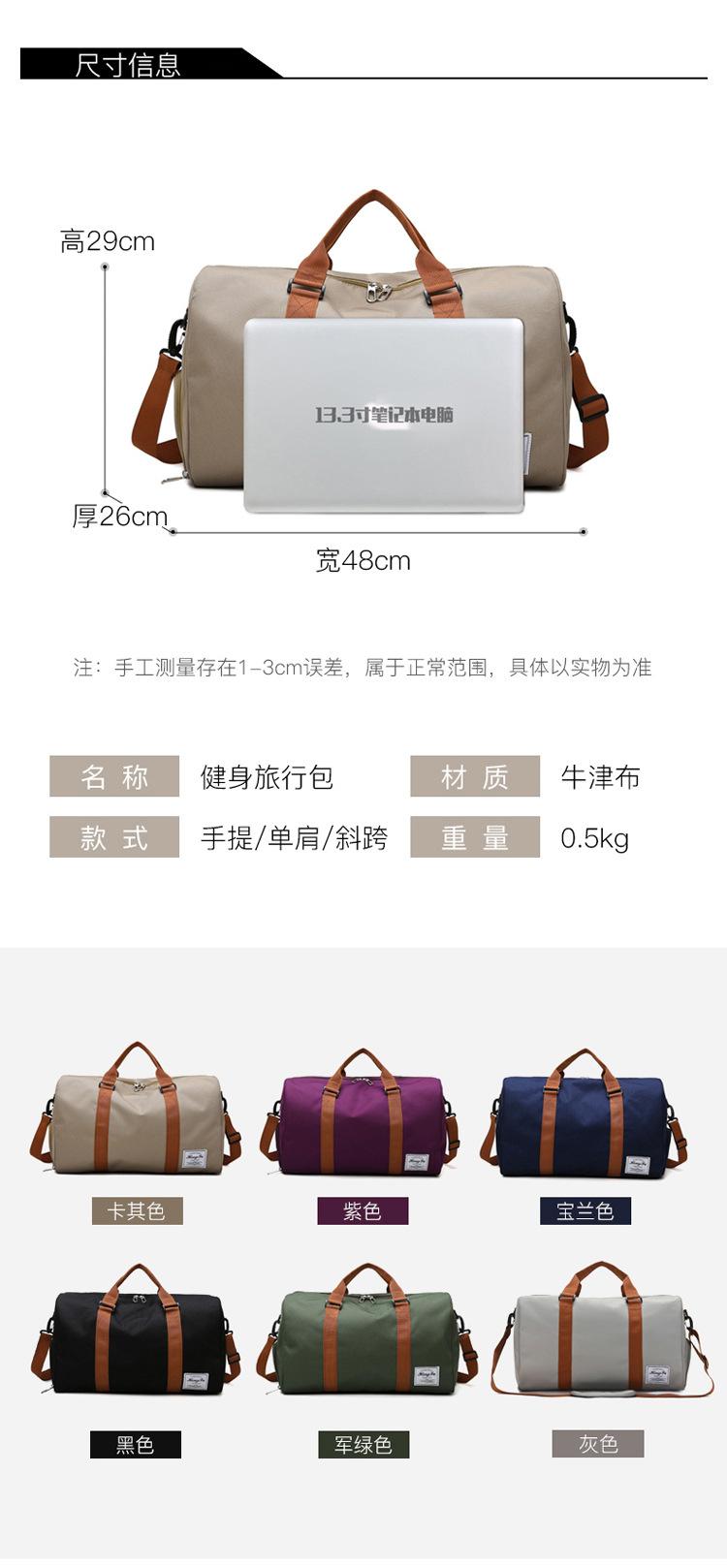 Bolsa de Equipaje de Viaje Transfronterizo Bolsa de Tela Oxford de Color Sólido Repelente al Agua Bolsa Deportiva para Exterior Fitness Ligera Bolsa de Viaje de Corta Distancia