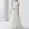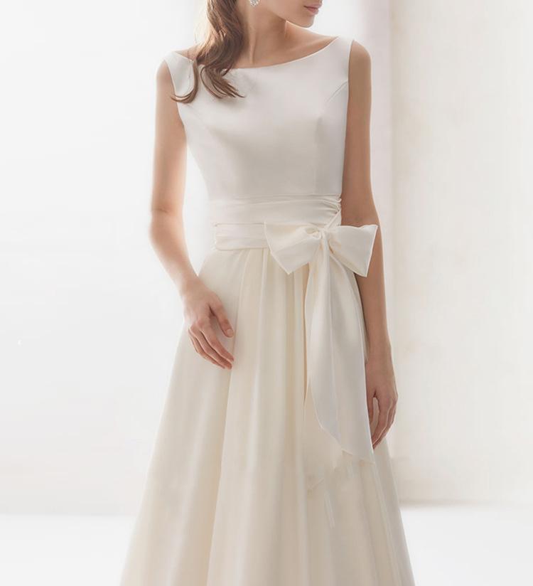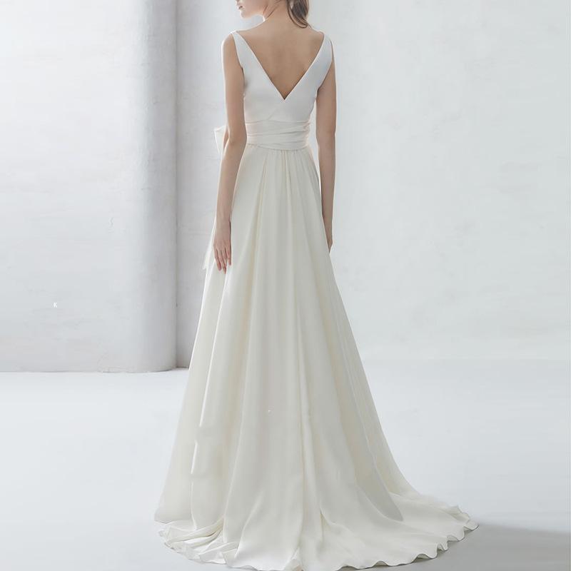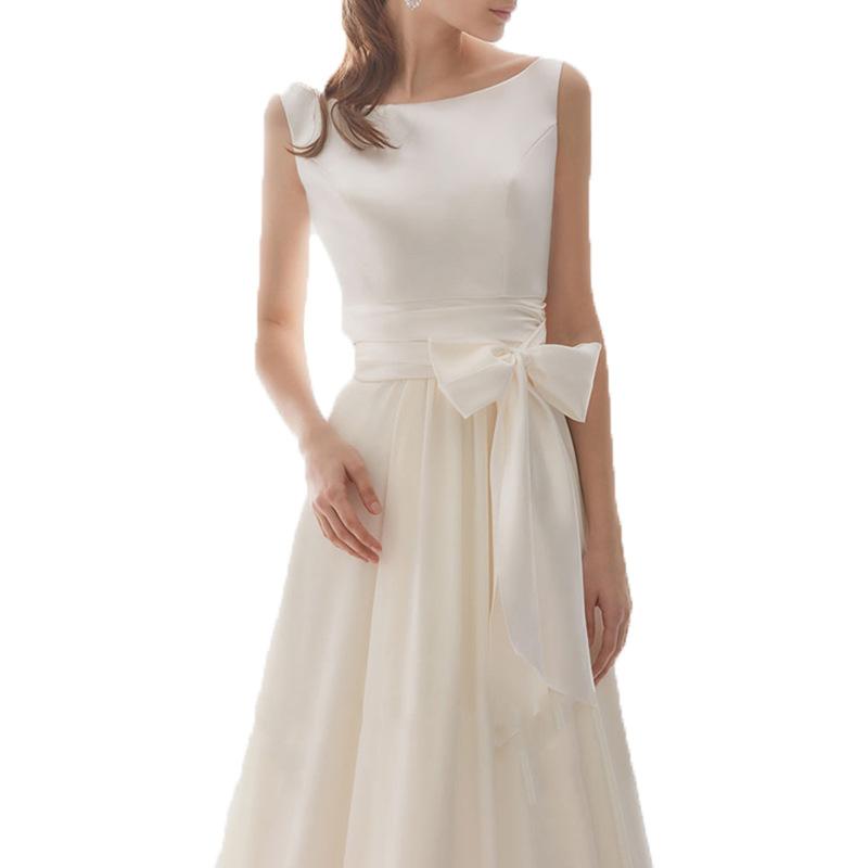 Vestidos de Novia de Satén de Cuello Redondo Europeos y Americanos al por Mayor 2025 Otoño Nuevo Estilo Vestido de Novia con Cola de Una Pieza Envío Directo Boda