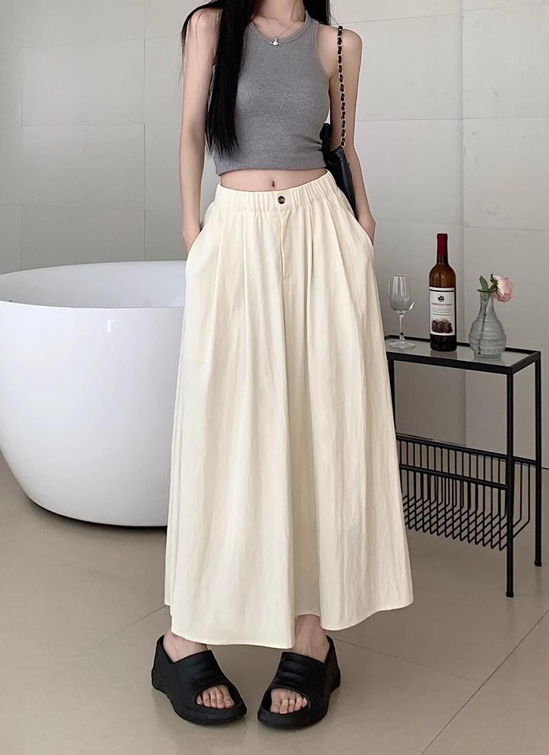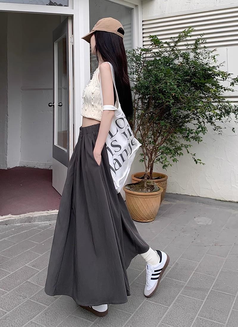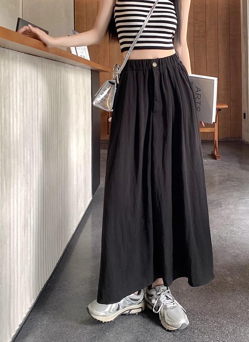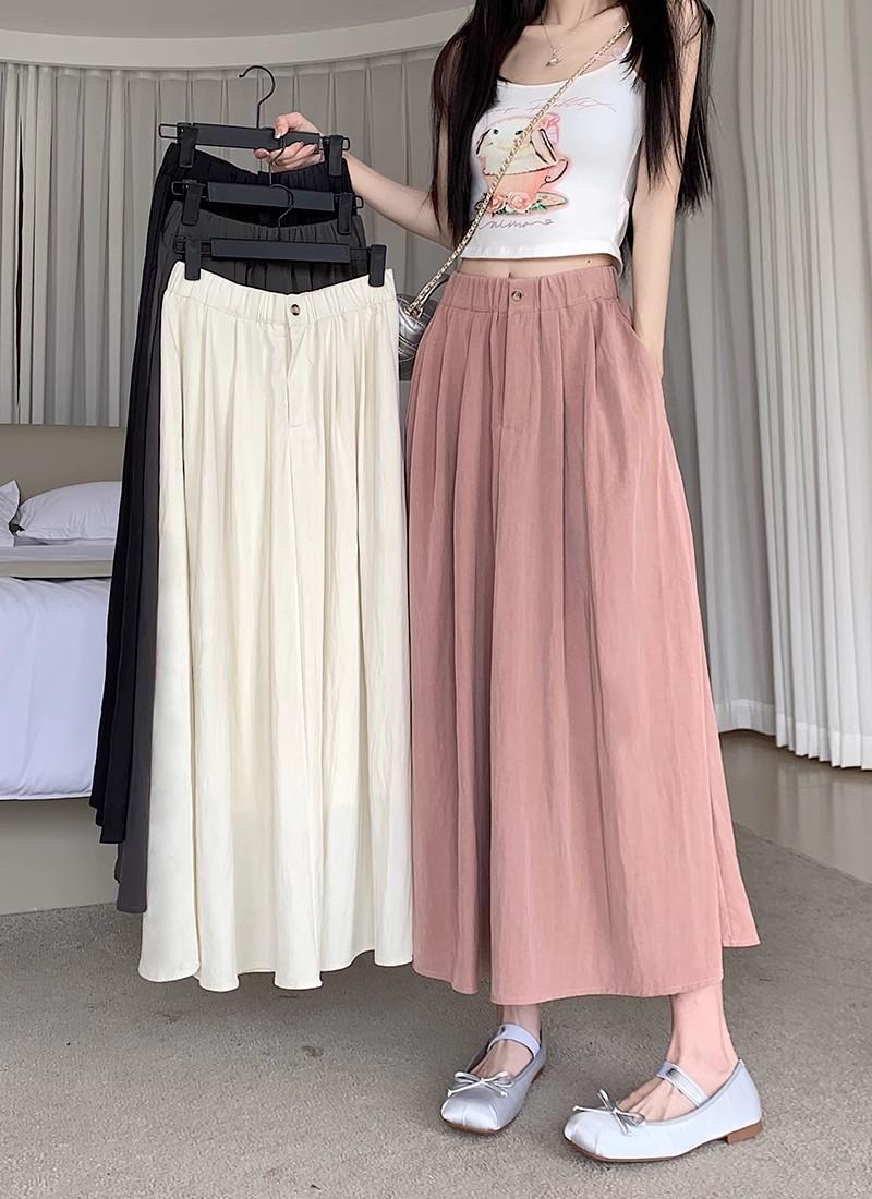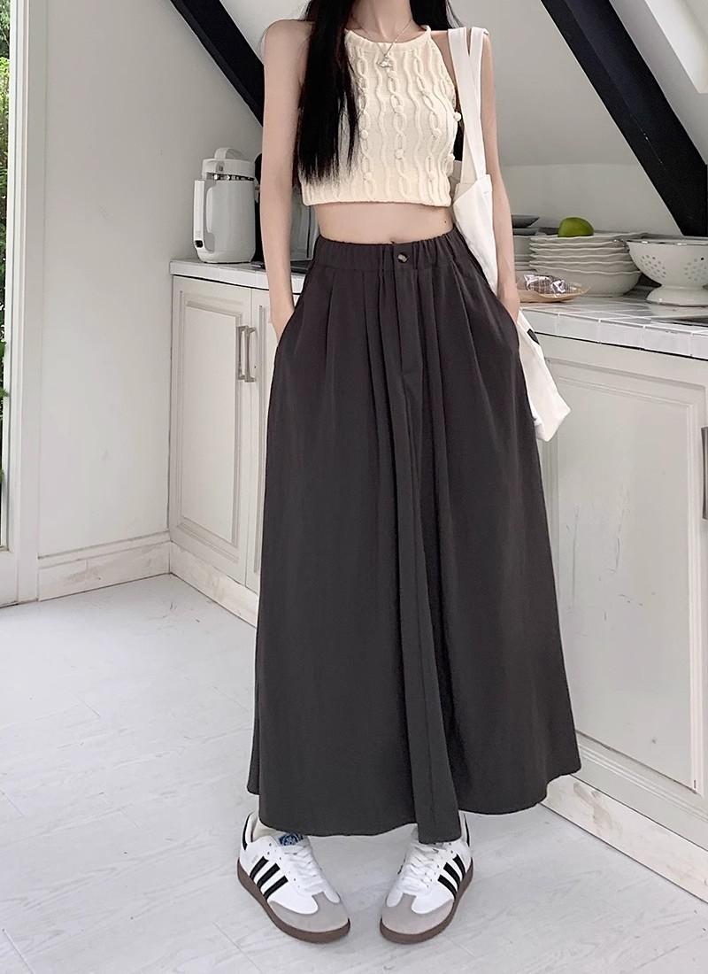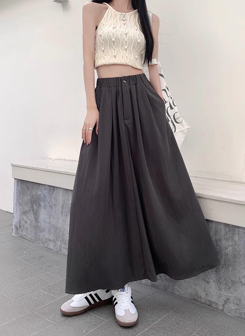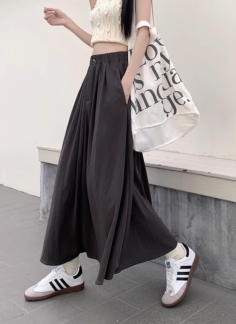 (con pantalones de bolsillo con solapa) Falda Plisada Drapeada de Tencel Seda Helada, Versátil Nueva 2025 Talla Grande Cintura Alta Línea A Falda Larga