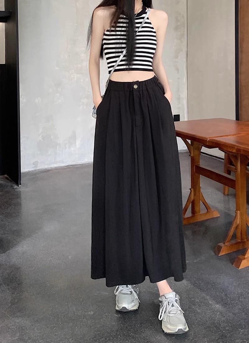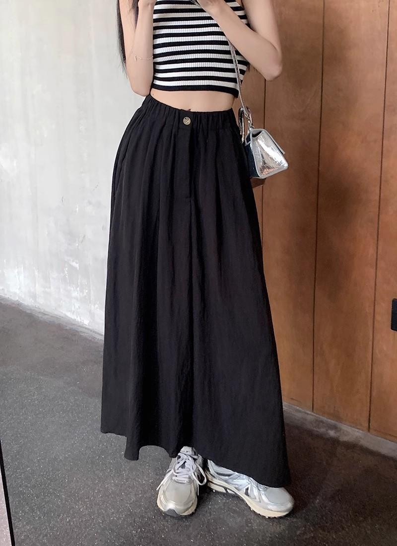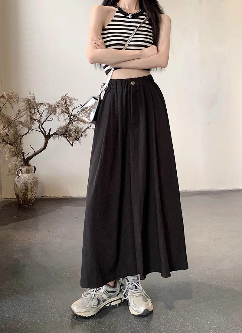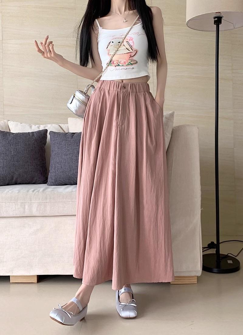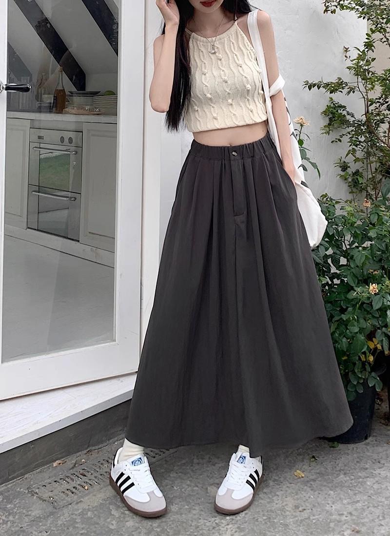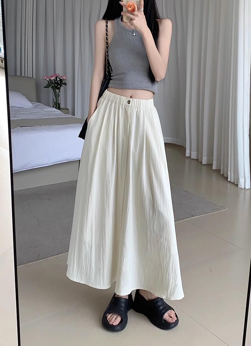 (con pantalones de bolsillo con solapa) Falda Plisada Drapeada de Tencel Seda Helada, Versátil Nueva 2025 Talla Grande Cintura Alta Línea A Falda Larga